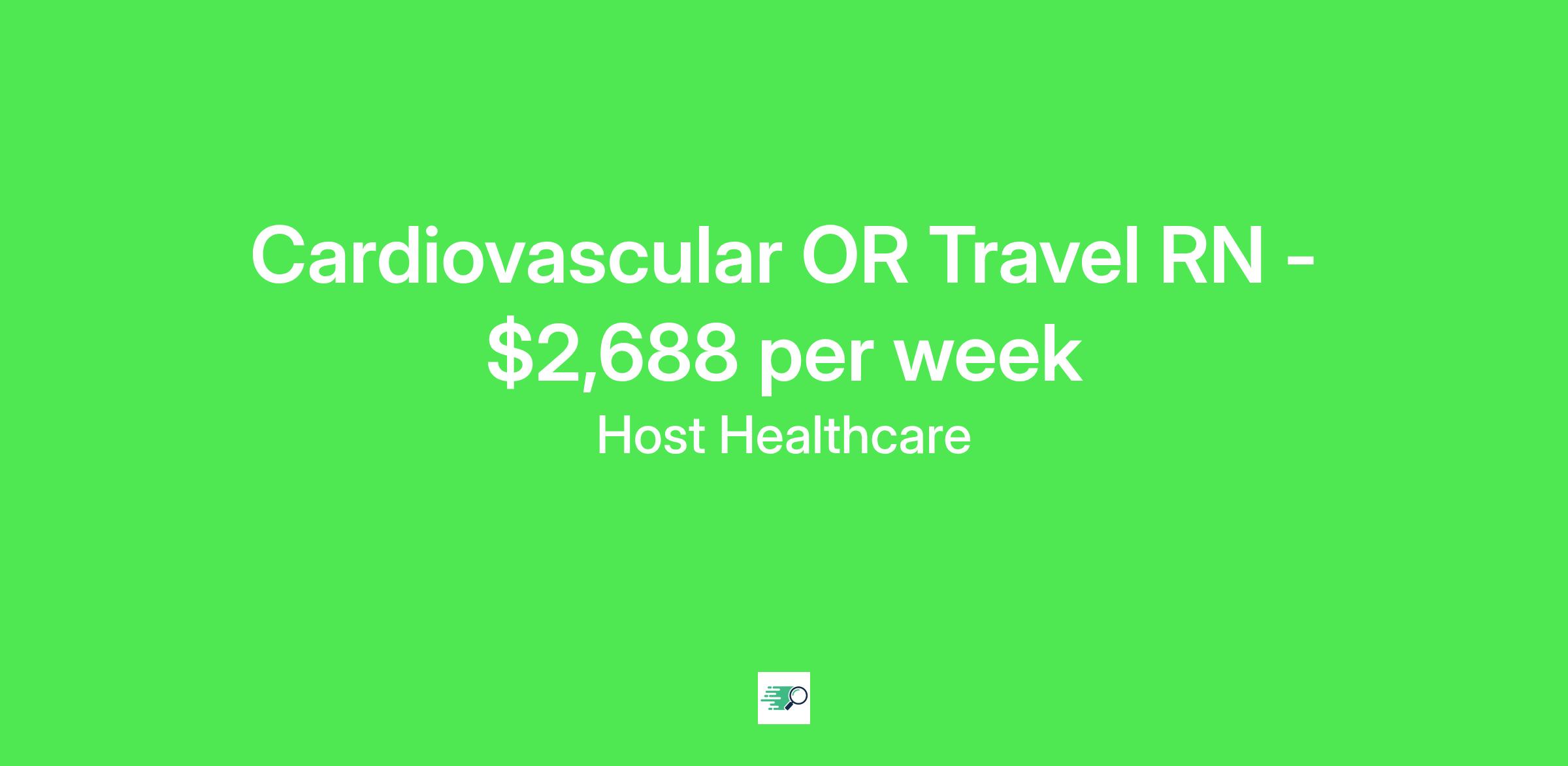 Job Description & RequirementsHost Healthcare Job ID . Pay package is based on 10 hour shifts and 40 hours per week (subject to confirmation) with tax-free stipend amount to be determined. Posted job title: RN - CVOR