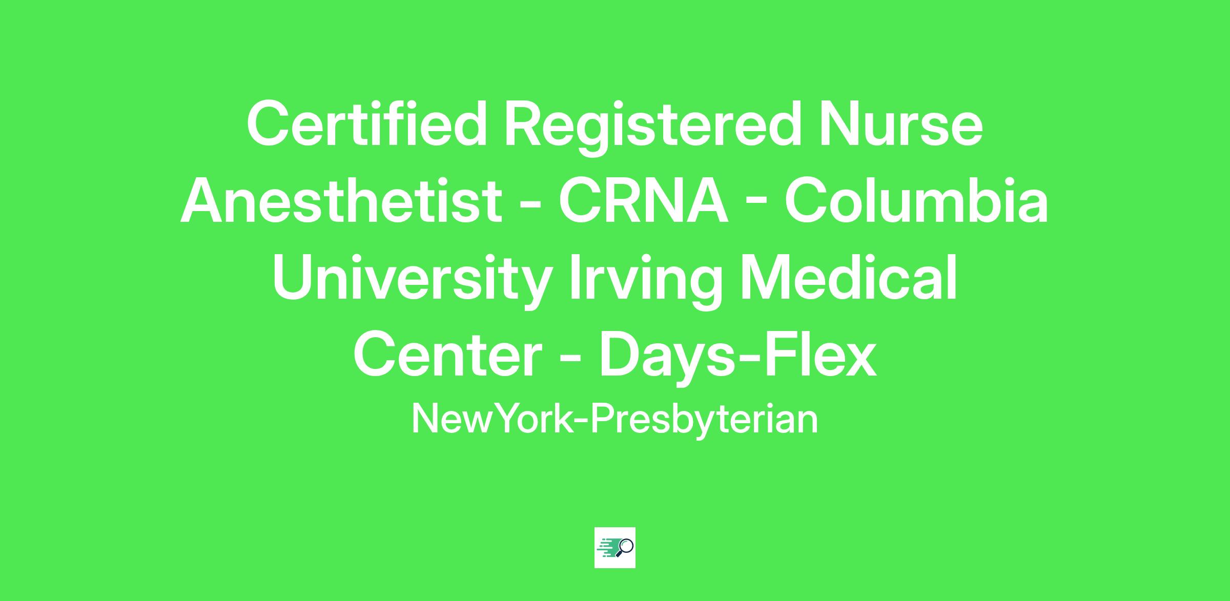 Certified Registered Nurse Anesthetist - CRNA - Columbia University Irving Medical Center  - Days/Flex
