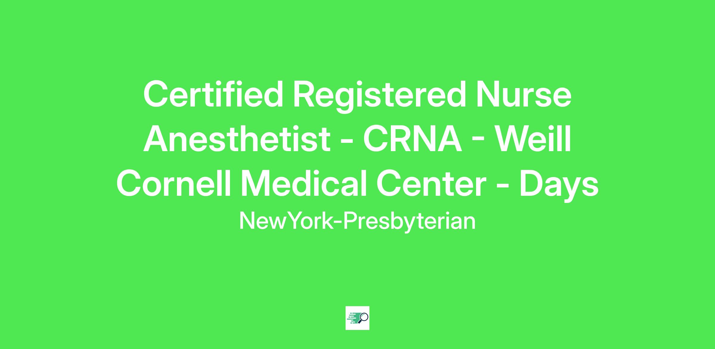 Certified Registered Nurse Anesthetist - CRNA - Weill Cornell Medical Center - Days