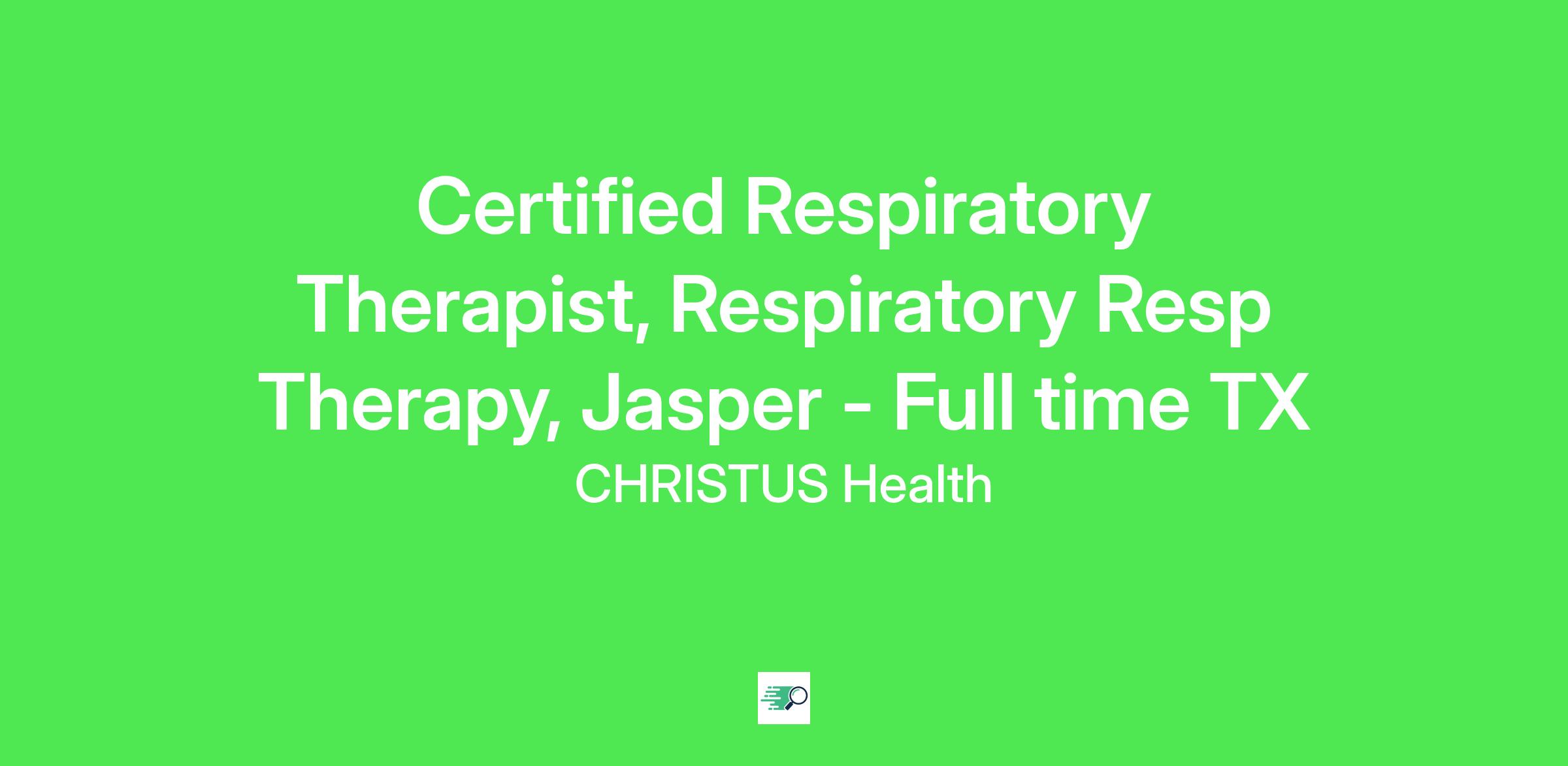 Certified Respiratory Therapist, Respiratory Resp Therapy, Jasper - Full time TX