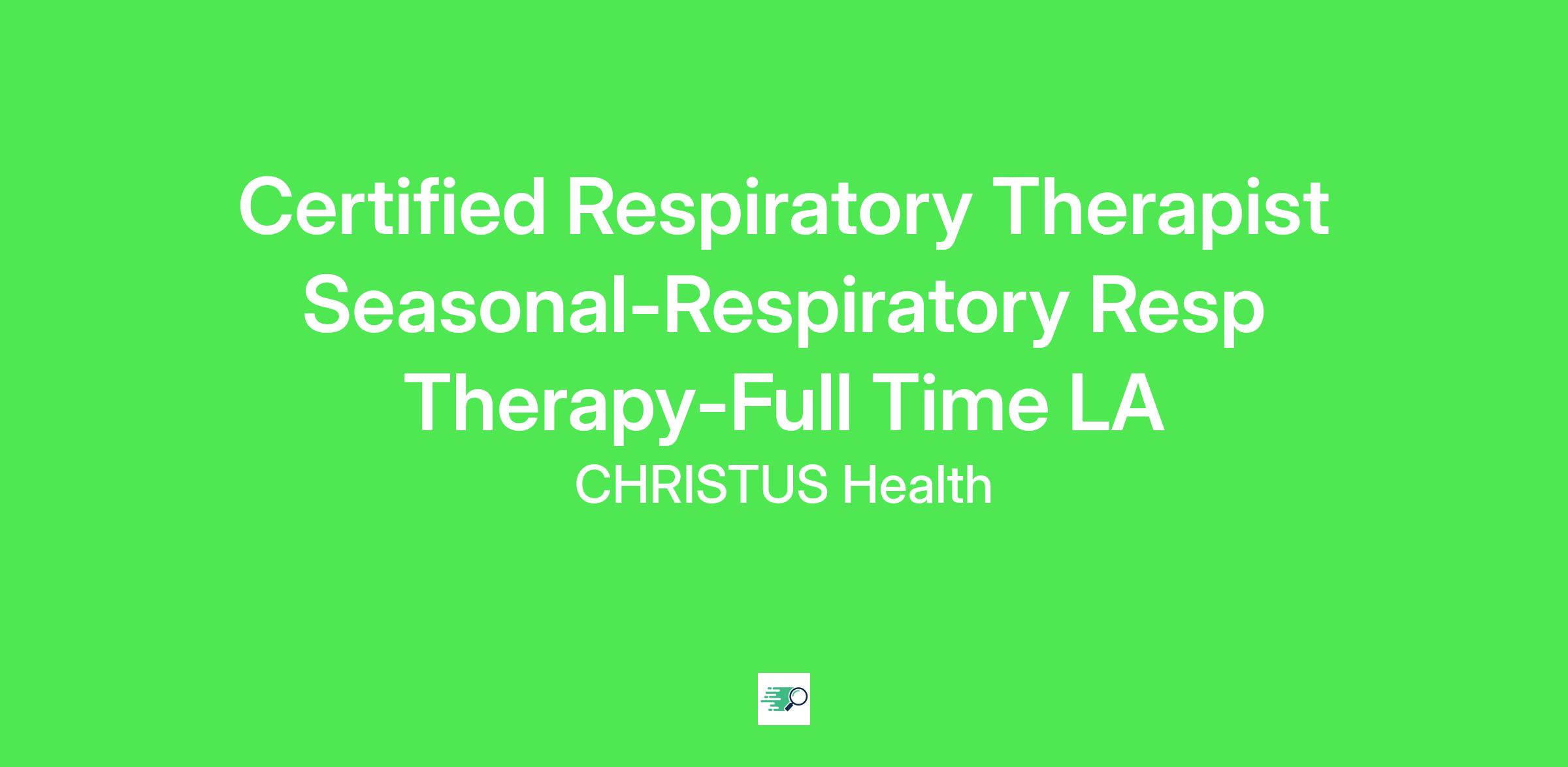 Education/Skills See licensure and/or certification requirements Experience 2 – 3 years of experience preferred Licenses, Registrations, or Certifications RCP License in the state of employment required BLS required CRT thru the National Board of Respiratory Care (NBRC) required In accordance with the CHRISTUS Health License, Certification and Registration Verification Policy, all Associates are required to obtain the required certifications for their respective positions within the designated time frame.
