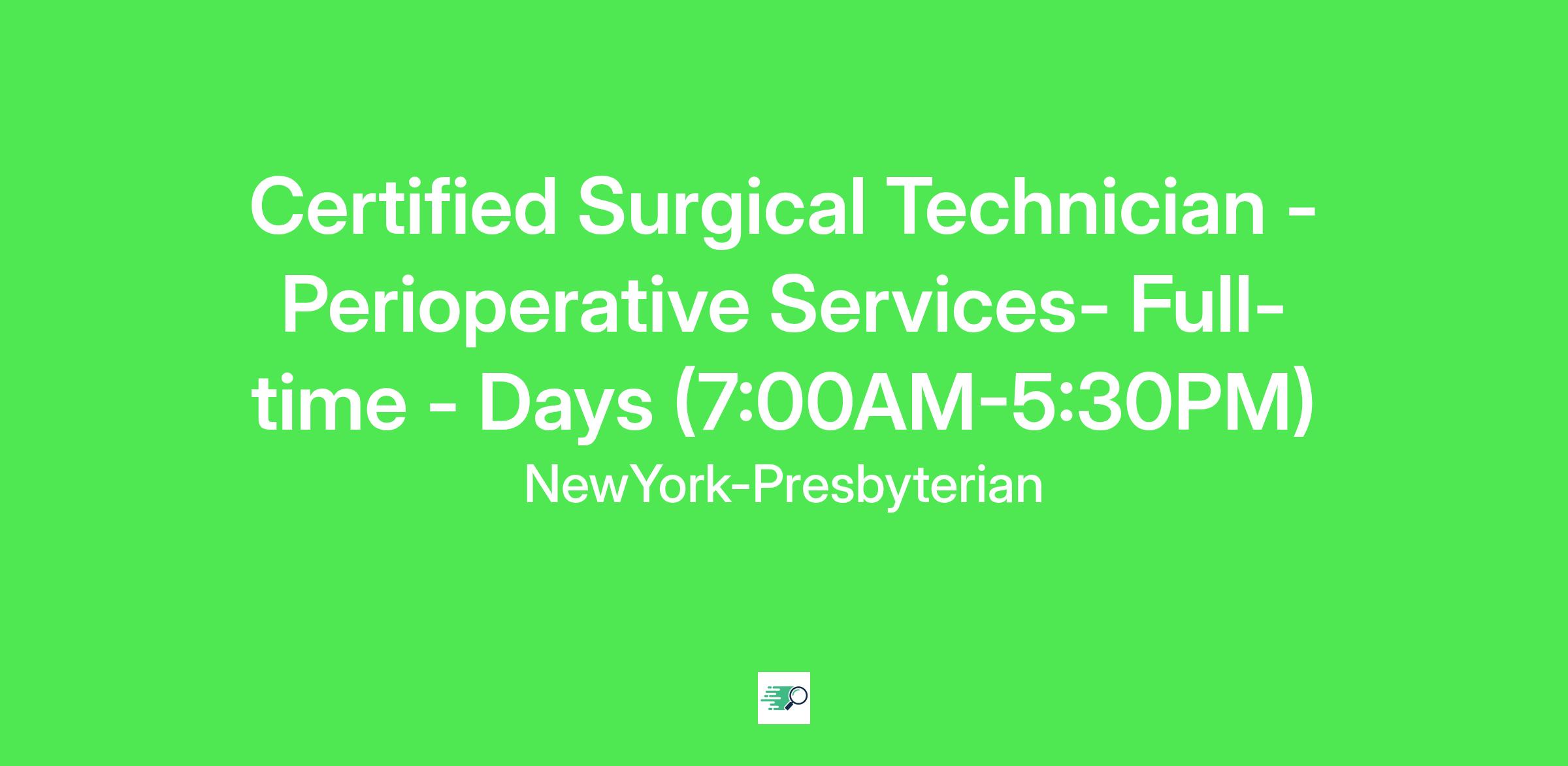 Certified Surgical Technician - Perioperative Services- Full-time - Days (7:00AM-5:30PM)
