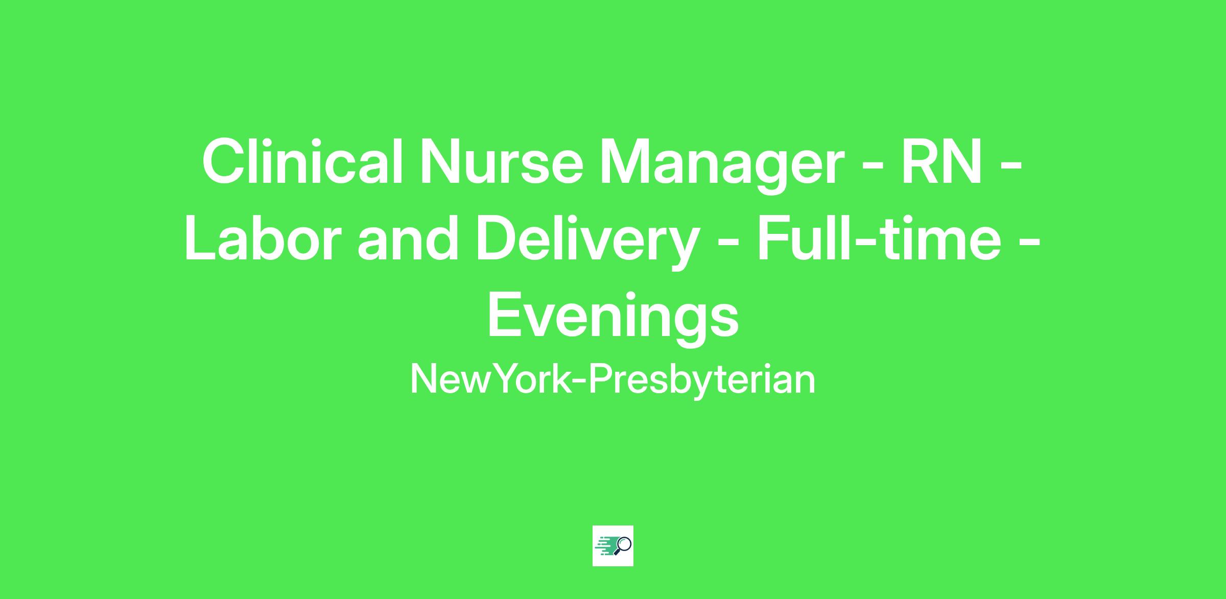 Clinical Nurse Manager - RN - Labor and Delivery - Full-time - Evenings