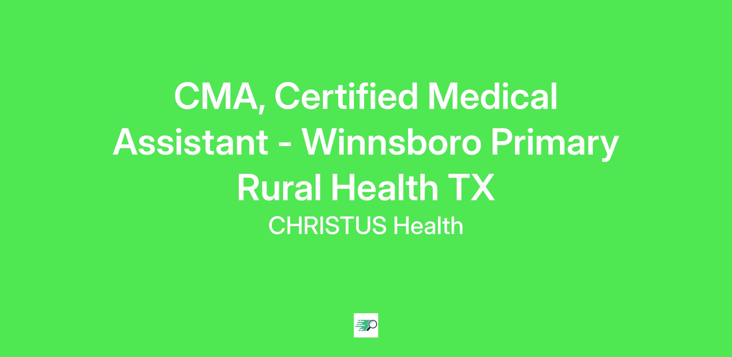 CMA, Certified Medical Assistant - Winnsboro Primary Rural Health TX