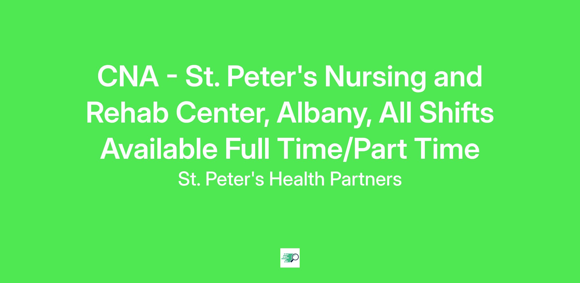 *Employment Type:* Full time *Shift:* Rotating Shift *Description:* CNA-Certified Nursing Assistant-Various Positions Available Feel like being part of a team where not only can you make a difference, but your opinions are recognized and valued? St Peterโs Nursing and Rehabilitation Center, in Albany, NY, offers a sub-acute unit where you can gain clinical experience and advance your nursing practice and long-term care units. Apply now to take advantage of this opportunity to join a facility, where the residents (and team members) are treated with dignity and respect in a family-like atmosphere! We are excited for you to join our team at SPNRC! Position Highlights: Quality of Life: Where career opportunities and quality of life converge Advancement: Strong orientation program, generous tuition allowance and career development Work/Life: Positions and shifts to accommodate all schedules What you will do: * Assist nursing personnel in providing basic care for residents, necessary unit tasks and functions. * Carries out assignments as instructed in a safe, appropriate and timely manner. Responsibilities: * Maintain standards of Nursing Care; performs selected resident care as directed by the RN or LPN while maintaining the dignity of the resident and in accordance with policies, procedures, and regulations. * Follow work assignments, and/or work schedules in completing and performing assigned tasks. * Create and maintain an atmosphere of warmth, personal interest and positive emphasis, as well as a calm environment through the unit and shift. Provide Resident Care: * Assists resident with hygiene needs (baths, mouth care, hair care, removes facial hair-shaving, nail care, back care). * Assists with feeding of those residents able to chew and swallow without difficulty. * Employs special oral feeding techniques for residents with special needs/difficulties. * Measures intake and output accurately and documents on worksheet and graphic sheet. * Check and report bowel movements and character of stools as instructed. * Performs routine colostomy care. * Answer resident calls promptly. * Ensure that residents who are unable to call for help are checked frequently. * Weighs resident using upright, chair and bed scale. * Measure and record temperatures, pulse, and respirations, as instructed. * Maintains safety measures. * Transfers or weighs residents using appropriate lift. * Assists residents in use of bathroom, shower urinal, bedpan and commode for residents. * Keep residents dry (i.e. change gown, clothing, linen, etc. when it becomes wet or soiled). * Change bed linens, make beds, provide extra covers as requested. Keep linens tight to avoid wrinkles from forming under the resident. * Ambulates residents, including those using canes and walkers, as instructed. * Assist in transporting residents to/from appointments, activity and social programs, etc. * Position bedfast residents in correct and comfortable position, assist with turning residents, and assist with lifting, turning, moving, positioning, and transporting residents into and out of beds, chairs, bathtubs, wheelchairs, lifts, etc. * Performs skin assessment and notifies Charge Nurse of any abnormalities in skin integrity. * Measures and documents vital signs and weights. Report any variation in vital signs and weights. Report any variation in vital signs to Charge Nurse. * Apply cold packs and warm compresses. * Upholds residents Bill of Rights. * Documents resident-related tasks in appropriate records. * Assists with postmortem care and discharge of resident transfer. * Assists with postmortem care and caring for personal belongings of the deceased. * Attend and participate in scheduled training, in-services, and educational classes a required. * Maintain confidentiality of all resident care information. * Other duties as assigned. What you will need: * Must be able to read, write and speak English; High School Diploma or equivalent life-experience preferred. * Must be a licensed Certified Nursing Assistant in accordance with New York State. * Excellent communication and interpersonal skills and a sincere desire to serve others. * Must be able to relay information concerning a resident's condition. * Must have patience, cheerful disposition and enthusiasm, as well as the willingness to handle difficult residents. * Must possess the ability to work professional with other staff, residents, family members, and outside agencies/visitors. Pay Range: $17.55 - $22.93 Pay is based on experience, skills, and education. Exempt positions under the Fair Labor Standards Act (FLSA) will be paid within the base salary equivalent of the stated hourly rates. The pay range may also vary within the stated range based on location. *Our Commitment * Rooted in our Mission and Core Values, we honor the dignity of every person and recognize the unique perspectives, experiences, and talents each colleague brings. By finding common ground and embracing our differences, we grow stronger together and deliver more compassionate, person-centered care. We are an Equal Opportunity Employer. All qualified applicants will receive consideration for employment without regard to race, color, religion, sex, sexual orientation, gender identity, national origin, disability, veteran status, or any other status protected by federal, state, or local law.