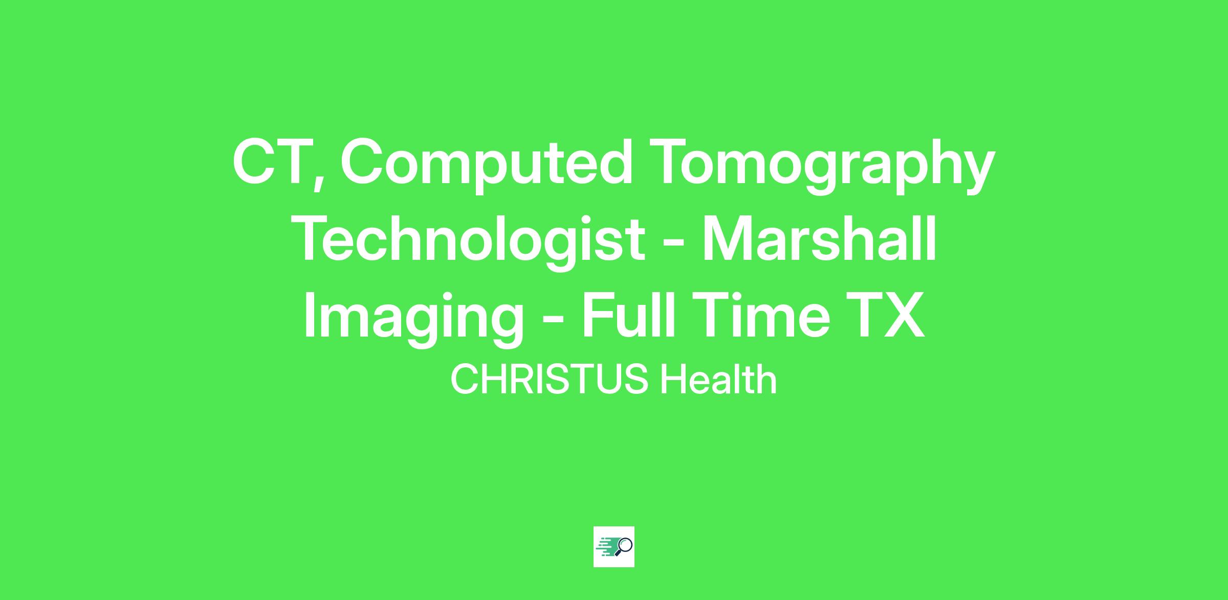 CT, Computed Tomography Technologist - Marshall Imaging - Full Time TX