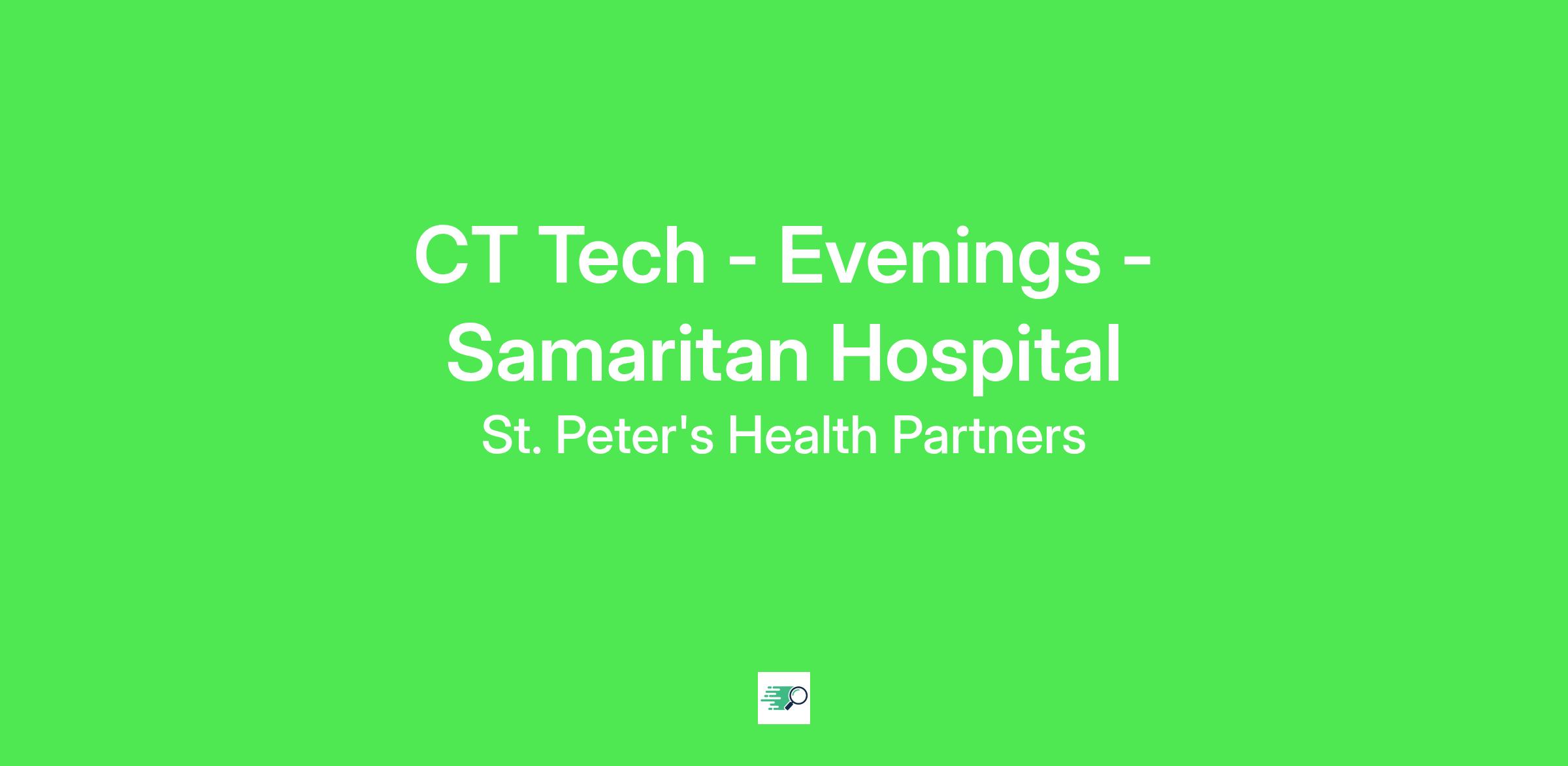 *Employment Type:* Full time *Shift:* Evening Shift *Description:* *CT Tech II - Samaritan Hospital Schedule - Evening Shift* Samaritan Hospital is looking for a full-time evening shift CT Technologist. If you are looking for a full-time position in Medical Imaging, this could be your opportunity. Here at Samaritan Hospital, a part of St Peter's Health Partners, we care for more people in more places. We are willing to train Rad Techs *Position Highlights:* Quality of Life: Where career opportunities and quality of life converge Advancement: Strong orientation program, generous tuition allowance and career development What you will do: Abiding by the Mercycare Mission and values, under the direction of the Chief of Medical Imaging, the CT Technologist II performs all CT procedures in accordance with department standards. *Responsibilities:* * Obtains and records a complete clinical history pertinent to examination requested. * Evaluates requests for appropriateness, refers concerns to coordinator and/or radiologist. * Instructs patients as to the nature of the exam being performed. * Effectively communicates information regarding post procedures. * Ensures proper radiation protection measures are taken to provide an ALARA environment for patients, co-workers and self. * Responsible for understanding the ALARA program and actively participating in dosimetry program. * Effectively completes all required documentation related to patient care, imaging procedures and RIS requirements. * Demonstrates proper use of positioning devices and other equipment necessary to provide safe, accurate, and complete exams. * Assists in the instruction of new personnel. *What you will need:* * AAS Degree in Radiologic Technology * Minimum of 2 years' experience as a CT Technologist * Current ARRT registration, NYS license required and certification to Inject * Experience on Siemen's equipment preferred *Pay Range*: $35.80 - $53.70 Pay is based on experience, skills, and education. Exempt positions under the Fair Labor Standards Act (FLSA) will be paid within the base salary equivalent of the stated hourly rates. The pay range may also vary within the stated range based on location. *Our Commitment * Rooted in our Mission and Core Values, we honor the dignity of every person and recognize the unique perspectives, experiences, and talents each colleague brings. By finding common ground and embracing our differences, we grow stronger together and deliver more compassionate, person-centered care. We are an Equal Opportunity Employer. All qualified applicants will receive consideration for employment without regard to race, color, religion, sex, sexual orientation, gender identity, national origin, disability, veteran status, or any other status protected by federal, state, or local law.