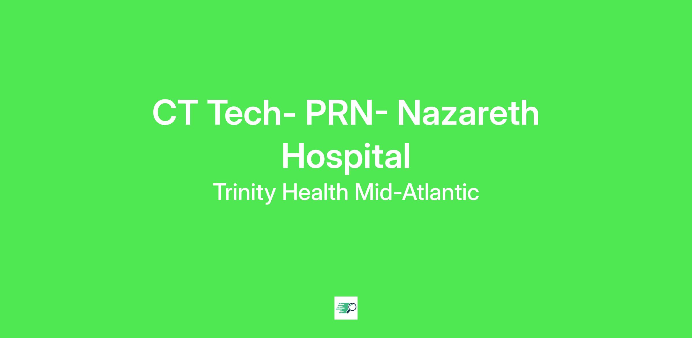 *Employment Type:* Part time *Shift:* Rotating Shift *Description:* Nazareth, a member of Trinity Health Mid-Atlantic, is looking for a CT Scan Technologist to join our Radiology Team! *Shift: *. PRN- per department needs. Weekend and holiday requirements. * Summary* Operates CAT (Computerized Axial Tomography) scanner to obtain information for use by physicians in diagnosing patient’s illness. Coordinates the scheduling of patients with departmental staff and participates in all activities related to performing this procedure. *Requirements: * * HS/equivalent graduate * Successful graduate from an AMA approved Radiology program * Registered by ARRT * CT certification required within 180days * BLS required * CT experience preferred *We offer a competitive salary and comprehensive benefits including:* * Retirement Savings Program * Free Parking * And more! *Our Commitment * Rooted in our Mission and Core Values, we honor the dignity of every person and recognize the unique perspectives, experiences, and talents each colleague brings. By finding common ground and embracing our differences, we grow stronger together and deliver more compassionate, person-centered care. We are an Equal Opportunity Employer. All qualified applicants will receive consideration for employment without regard to race, color, religion, sex, sexual orientation, gender identity, national origin, disability, veteran status, or any other status protected by federal, state, or local law.