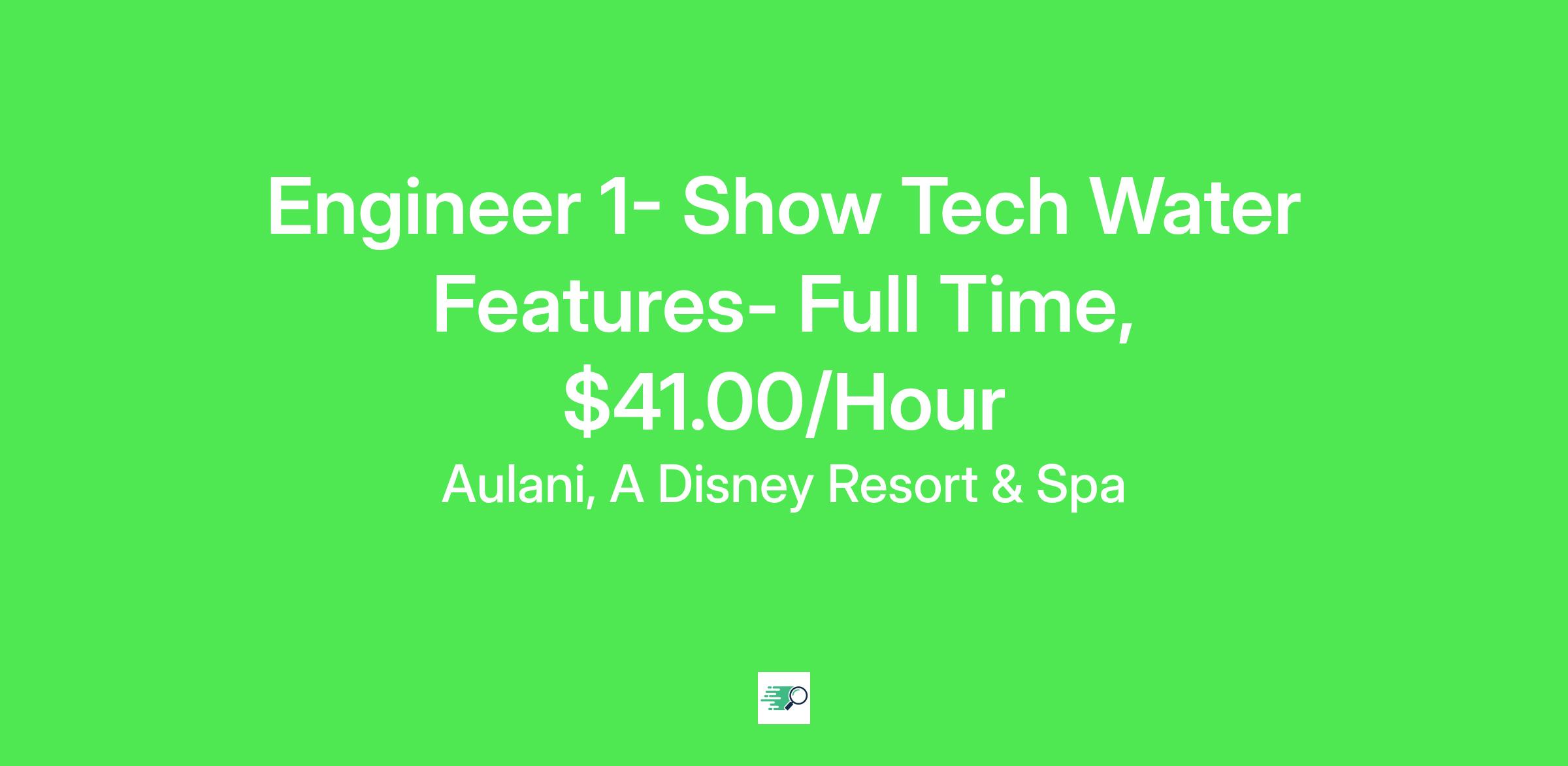 Come and join the magic with Aulani, A Disney Resort and Spa! Perks and benefits may include: 100% full coverage of healthcare for you and your eligible dependents Tuition paid upfront at network schools Free lunch Free parking Free theme park admission and much more! Diagnose and provide service and repairs for all Aulani land and water features and Show Tech equipment. This position will require experience in plumbing, electrical, pump rooms, computer knowledge, and responding to inquiries and problems in a courteous, efficient and professional manner to achieve the highest guest satisfaction while complying with all Disney policies. Responsibilities : • Perform preventive maintenance, troubleshooting, and repair of show tech equipment, games, audio visual, background music equipment, and components. • Perform preventive maintenance, troubleshooting, and repair on water feature pumps, equipment, and components for all Aulani water features. • Keep accurate records of maintenance and repair work. • Have extensive knowledge of electrical controls and relays. • Have extensive knowledge of pneumatic valves and control devices. • Be proficient in all show tech and water features maintenance practices and the use of associated technologies. • Read electrical, mechanical, and plumbing prints/drawings and comprehend design principles. • Read and interpret technical manuals and blueprints. • Diagnose and handle all repairs of equipment including motors, starters, feeders, filtration systems, and pumps throughout the Resort. • Install and replace filtration system elements, i.e., gaskets, gauges, valves, etc. • Respond promptly to all guest requests and resolve any maintenance-related issues. • Perform other duties as required by management. • Ensure safety for oneself and others. • Follow all safety procedures and use appropriate personal protective equipment. • Work harmoniously and professionally with co-workers and supervisors. • Comply with Disney work rules and standards of conduct. • Respond to emergency conditions, such as fires and power failures. • Perform necessary repairs and preventive maintenance in guest rooms, public areas, pools, and select equipment of the resort • Effectively update and maintain logs. • Respond to guest calls for maintenance in rooms or public areas. • May be required to contact and manage vendor/contractor support. • Install or relocate equipment as necessary. • Maintain parts and tool inventories. • Keep all engineering areas orderly and clean. Basic Qualifications : • Minimum 5 years of experience in a related field and hospitality • Leadership capabilities • Demonstrated learning and continual development in the craft • Advanced analytical troubleshooting skills • Excellent communication skills, both verbal and written • Passion for mentoring and leading others through training and feedback • Ability to work varied shifts and days off Additional Information : Full Time - Full availability is required seven (7) days per week, including early mornings, late nights, weekends, and holidays. The pay rate for this role in Hawaii is $41.00 per hour. Select benefits may be provided as part of the compensation package, such as medical, financial, and/or other benefits, dependent on the level and position offered. To learn more about our benefits visit: