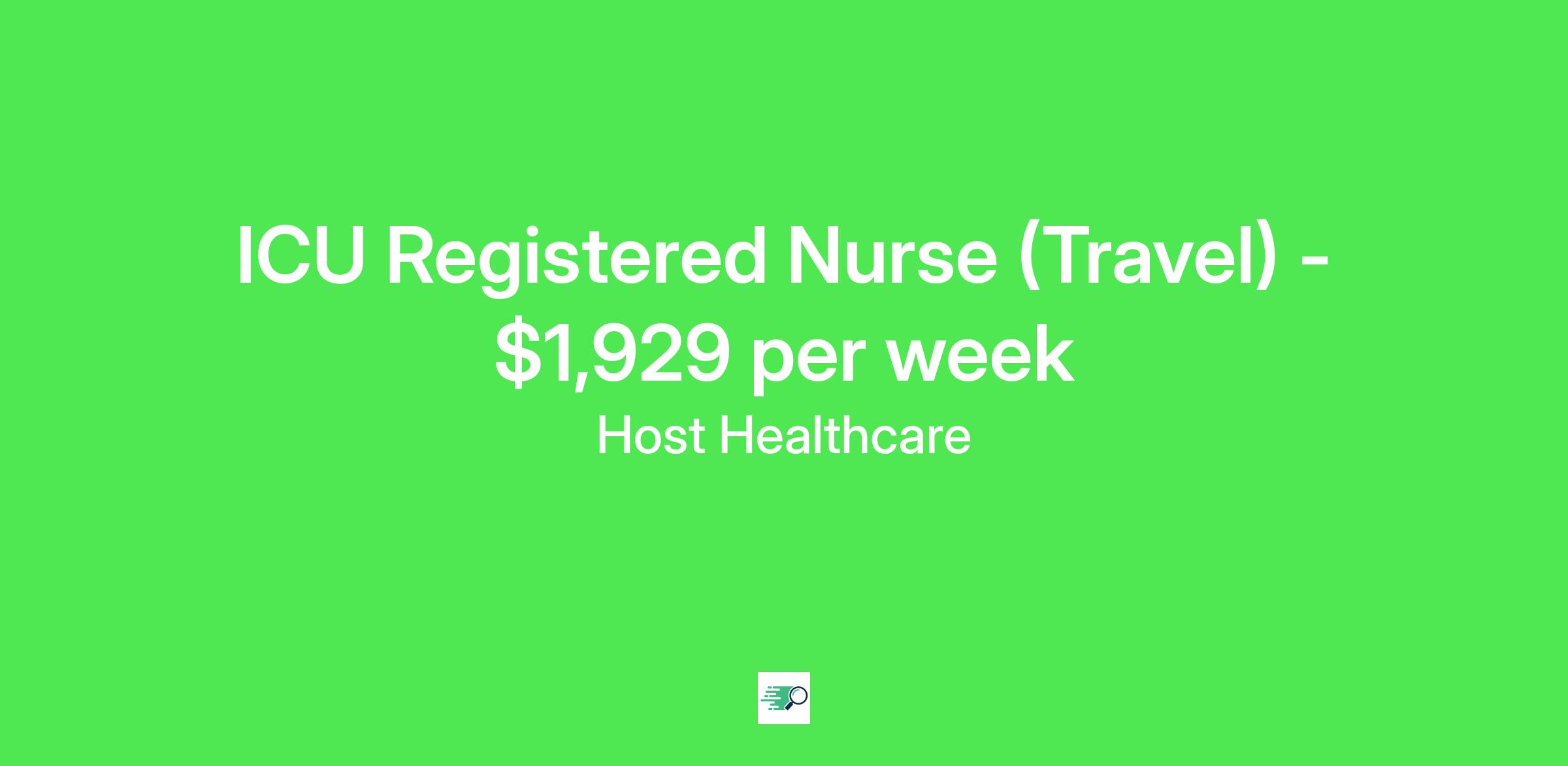Job Description & RequirementsHost Healthcare Job ID . Pay package is based on 12 hour shifts and 36 hours per week (subject to confirmation) with tax-free stipend amount to be determined. Posted job title: RN - ICU