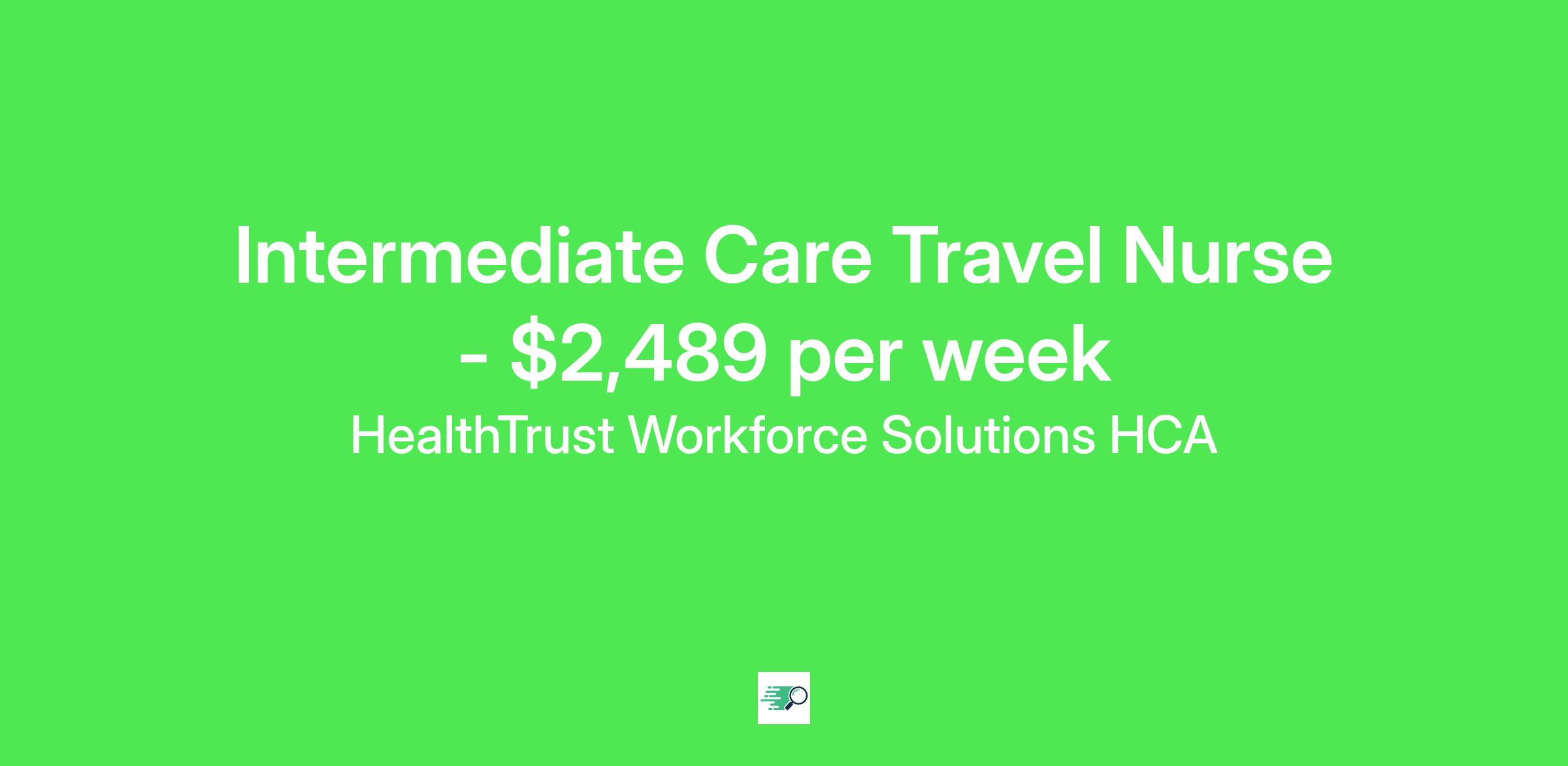 HealthTrust Workforce Solutions HCA Job ID . Posted job title: Travel Nurse - Intermediate Care