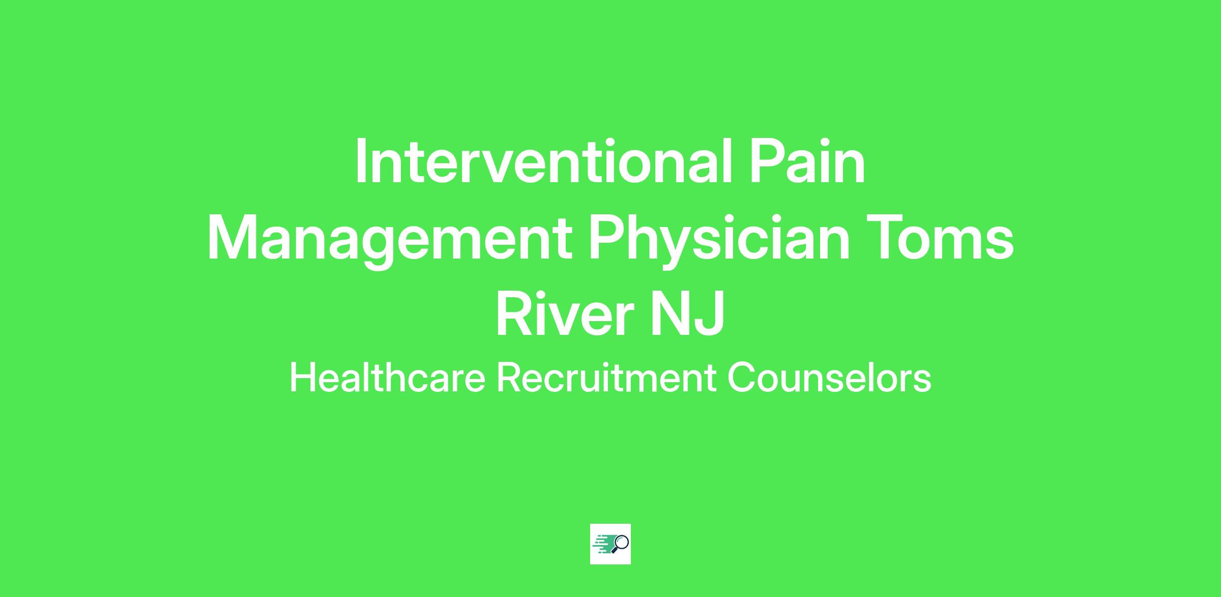 Interventional Pain Management Physician Toms River NJ $415k-$460k to start with potential up to $575k We are looking for an Interventional Physical Medicine and Rehabilitation/Anesthesiologist Physician (PM&R) to join our growing medical team full time at our busy office in Toms River NJ. We are looking for outstanding physicians with a passion for quality, an entrepreneurial spirit, and a team approach to join our growing organization and participate in defining the pain management practice of the future. Are you passionate about caring for patients? Love providing individualized care in a state-of-the-art facility with an excellent support staff and team? Join us and you can be a part of a knowledgeable, dynamic team who treat a variety of pain, conditions, and age ranges.