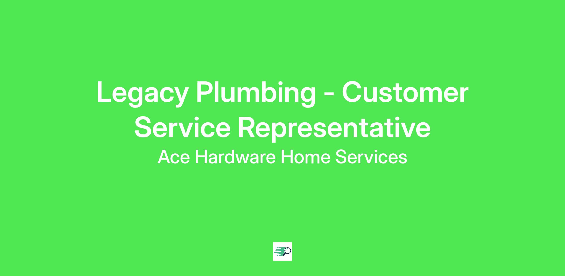 Job Description: Who we are: Legacy Plumbing is now an Ace Hardware Company. At Ace Hardware Home Services, we are backed by a brand that customers have trusted for over 100 years. You can trust that you can build a career you will be proud of. A career with excellent income, a consistent work schedule and opportunities for advancements. Your essential contributions will be appreciated, respected, and rewarded. Here you won't just "have a job," you will be helping us to reshape the future of home services by providing reliable, best-in-class service to your neighbors in your community.
