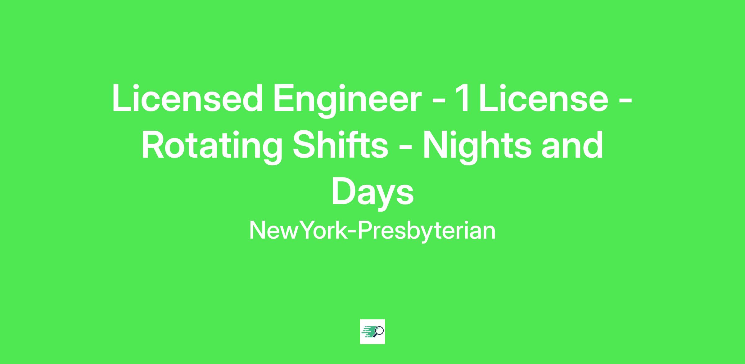 Licensed Engineer - 1 License - Rotating Shifts - Nights and Days