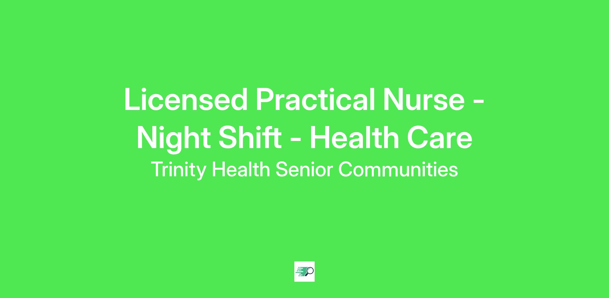 Employment Type:* Full time *Shift:* 12 Hour Night Shift *Description:* The *Licensed Practical Nurse* (LPN) role at the *Heartwood Lodge* in Spring Lake, Michigan, involves providing direct nursing care to residents and supervising daily nursing activities to ensure compliance with healthcare standards and regulations. Direct Resident Care*: Administer medications, perform wound care, assist with mobility, and monitor vital signs. * *Supervision*: Oversee nursing staff during shifts, ensuring adherence to care plans and regulatory standards. * *Compliance*: Maintain accurate medical records and ensure all practices meet federal, state, and local healthcare regulations. * *Collaboration*: Work with the Director of Nursing or Clinical Care Coordinator to uphold quality care standards. * *Quality Improvement*: Participate in initiatives aimed at enhancing resident care and facility operations. Qualifications for this position typically include a valid LPN certification and experience in a long-term care setting. Familiarity with electronic health records and supervisory experience are advantageous. *5,000 Sign-on Bonus * Paid holidays and generous Paid Time Off (PTO) * *Up to $4,000 in tuition reimbursement annually * Discounts with major vendors; Day 1 Benefits - Low cost medical, dental and vision insurance plans. Enjoy lower cost medical services when you visit facilities within the Trinity Health network. * Daily-pay options * Fast response interview times and job offers! *By finding common ground and embracing our differences, we grow stronger together and deliver more compassionate, person-centered care. All qualified applicants will receive consideration for employment without regard to race, color, religion, sex, sexual orientation, gender identity, national origin, disability, veteran status, or any other status protected by federal, state, or local law.