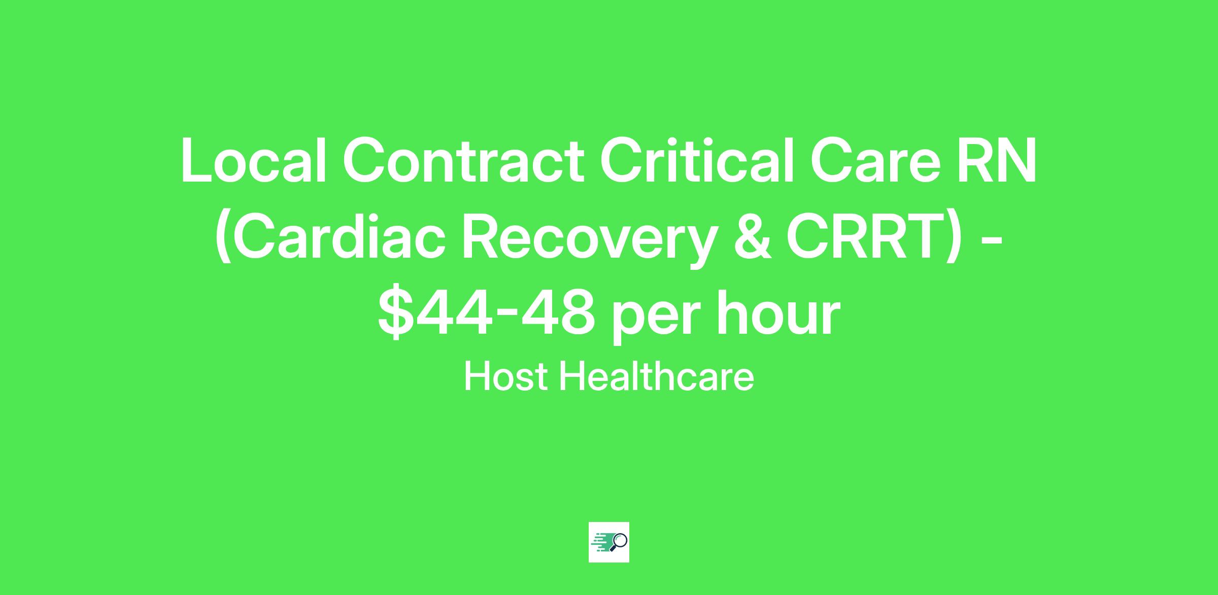 Job Description & RequirementsHost Healthcare Job ID . Pay package is based on 12 hour shifts and 36 hours per week (subject to confirmation) with tax-free stipend amount to be determined. Posted job title: RN - CVICU