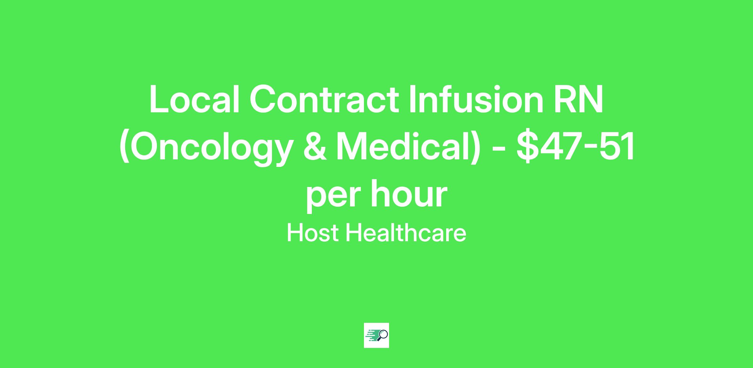 Job Description & RequirementsHost Healthcare Job ID . Pay package is based on 10 hour shifts and 40 hours per week (subject to confirmation) with tax-free stipend amount to be determined. Posted job title: RN - Oncology
