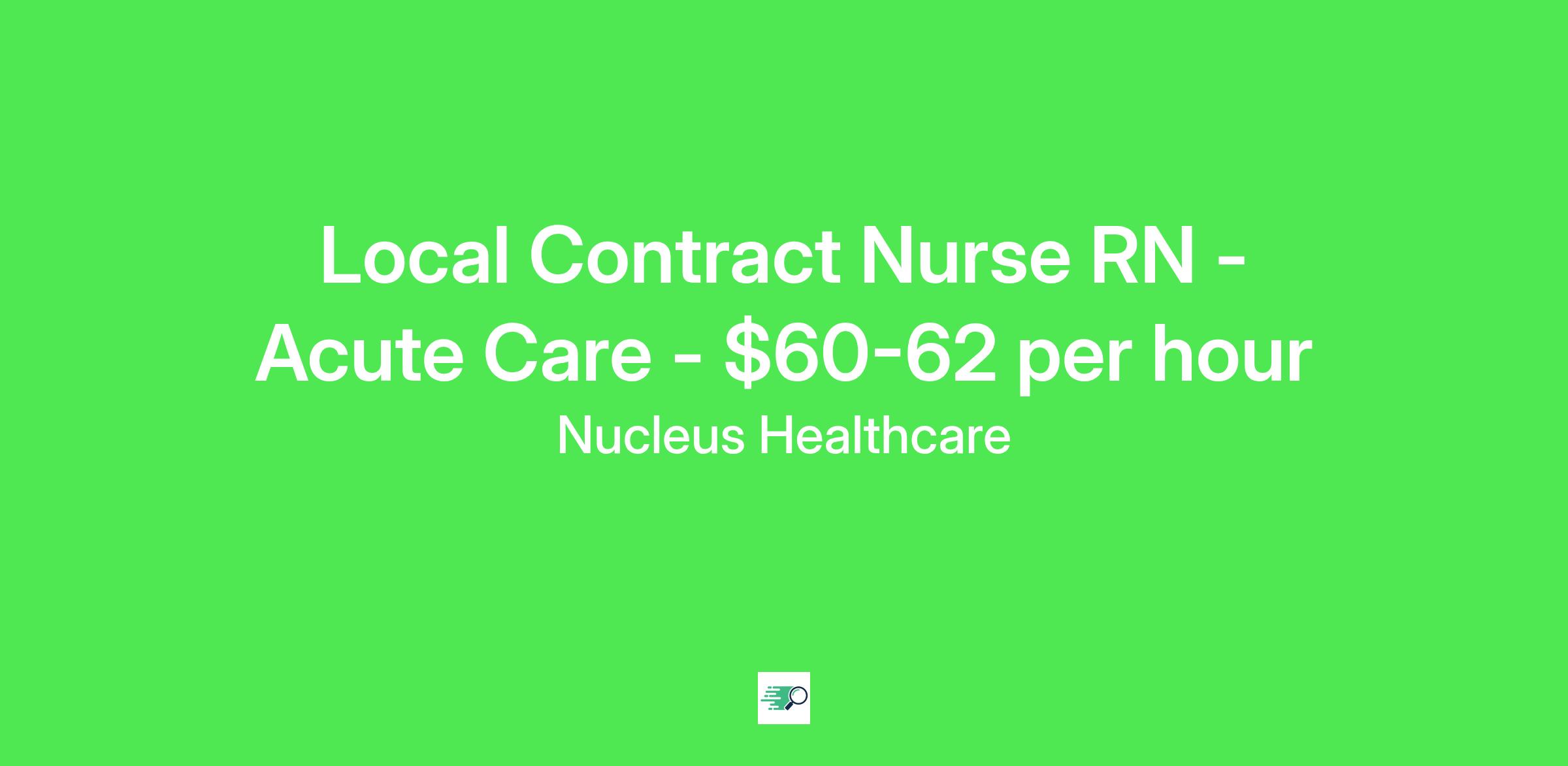Nucleus Healthcare is seeking a local contract nurse RN Acute Care for a local contract nursing job in Davenport, Iowa.