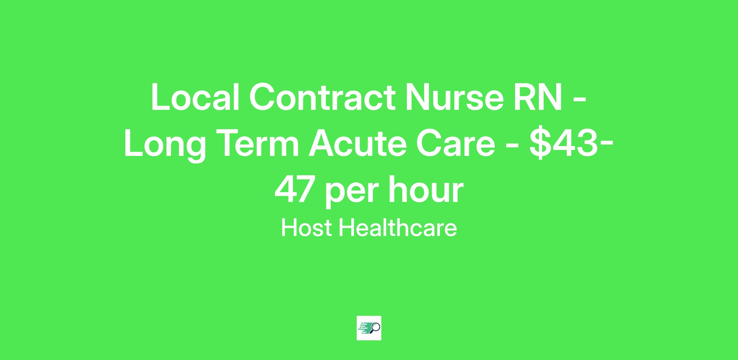 Host Healthcare is seeking a local contract nurse RN Long Term Acute Care for a local contract nursing job in Erie, Pennsylvania.