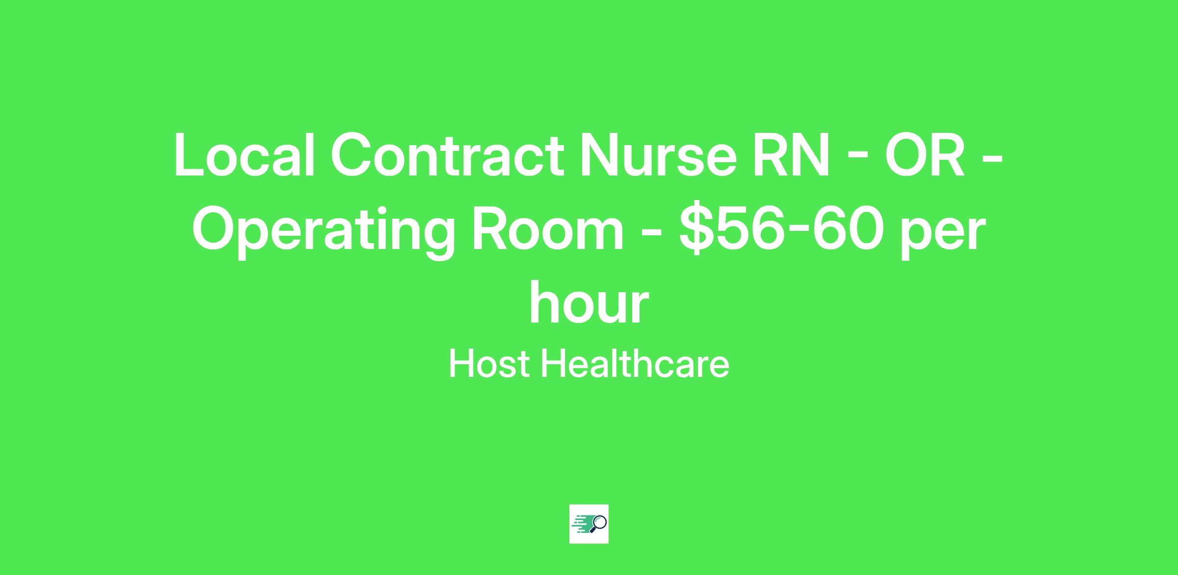 Job Description & RequirementsHost Healthcare Job ID . Pay package is based on 8 hour shifts and 40 hours per week (subject to confirmation) with tax-free stipend amount to be determined. Posted job title: RN - Operating Room