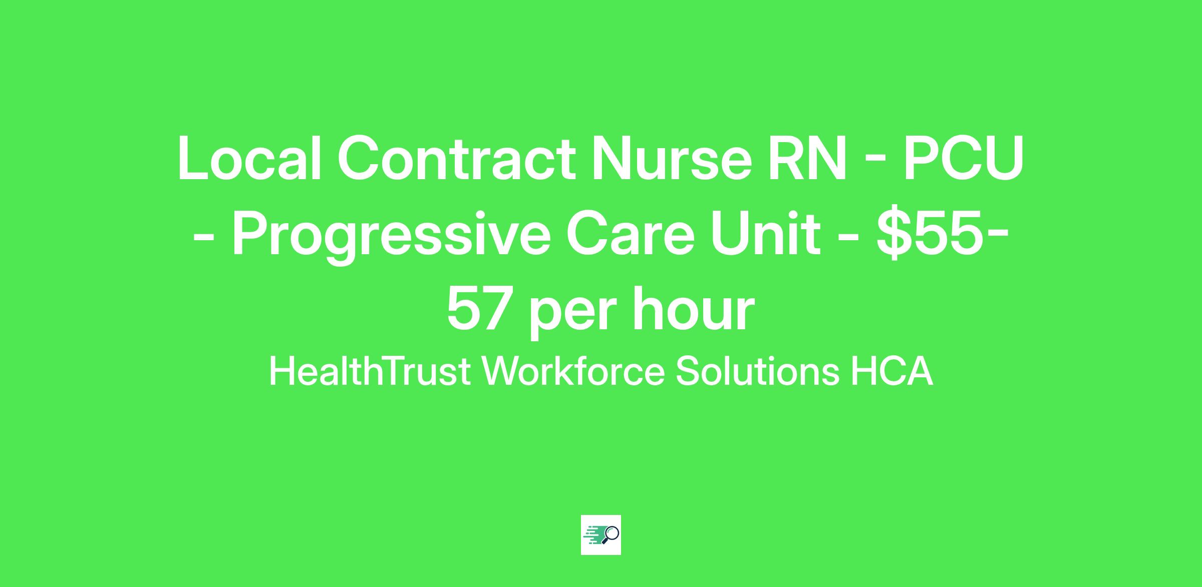 HealthTrust Workforce Solutions HCA is seeking a local contract nurse RN PCU - Progressive Care Unit for a local contract nursing job in Salem, Virginia.