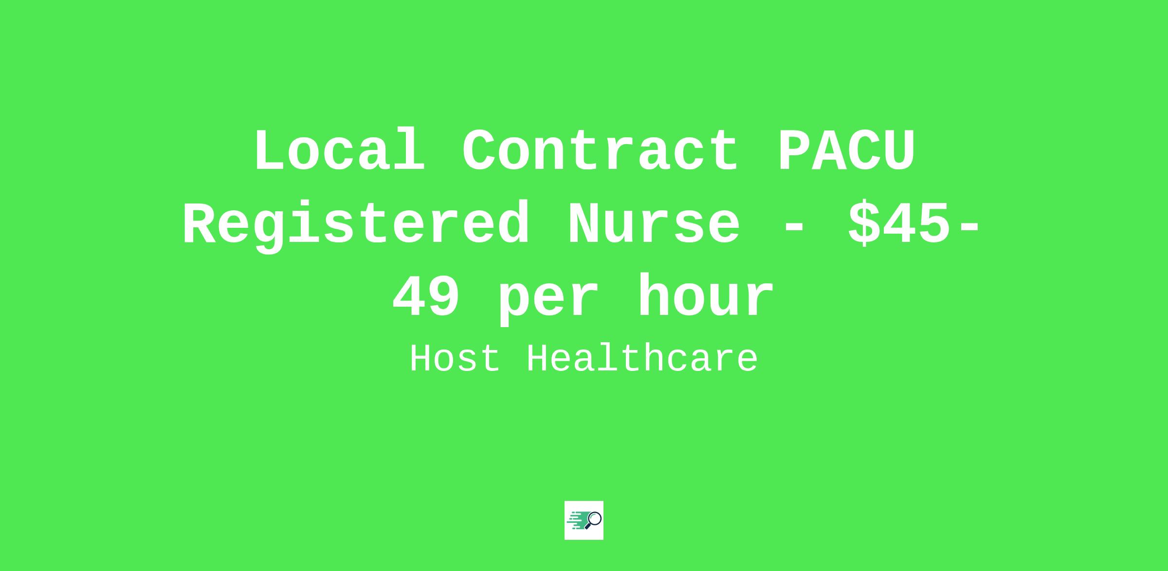 Job Description & RequirementsHost Healthcare Job ID . Pay package is based on 8 hour shifts and 40 hours per week (subject to confirmation) with tax-free stipend amount to be determined. Posted job title: RN - PACU