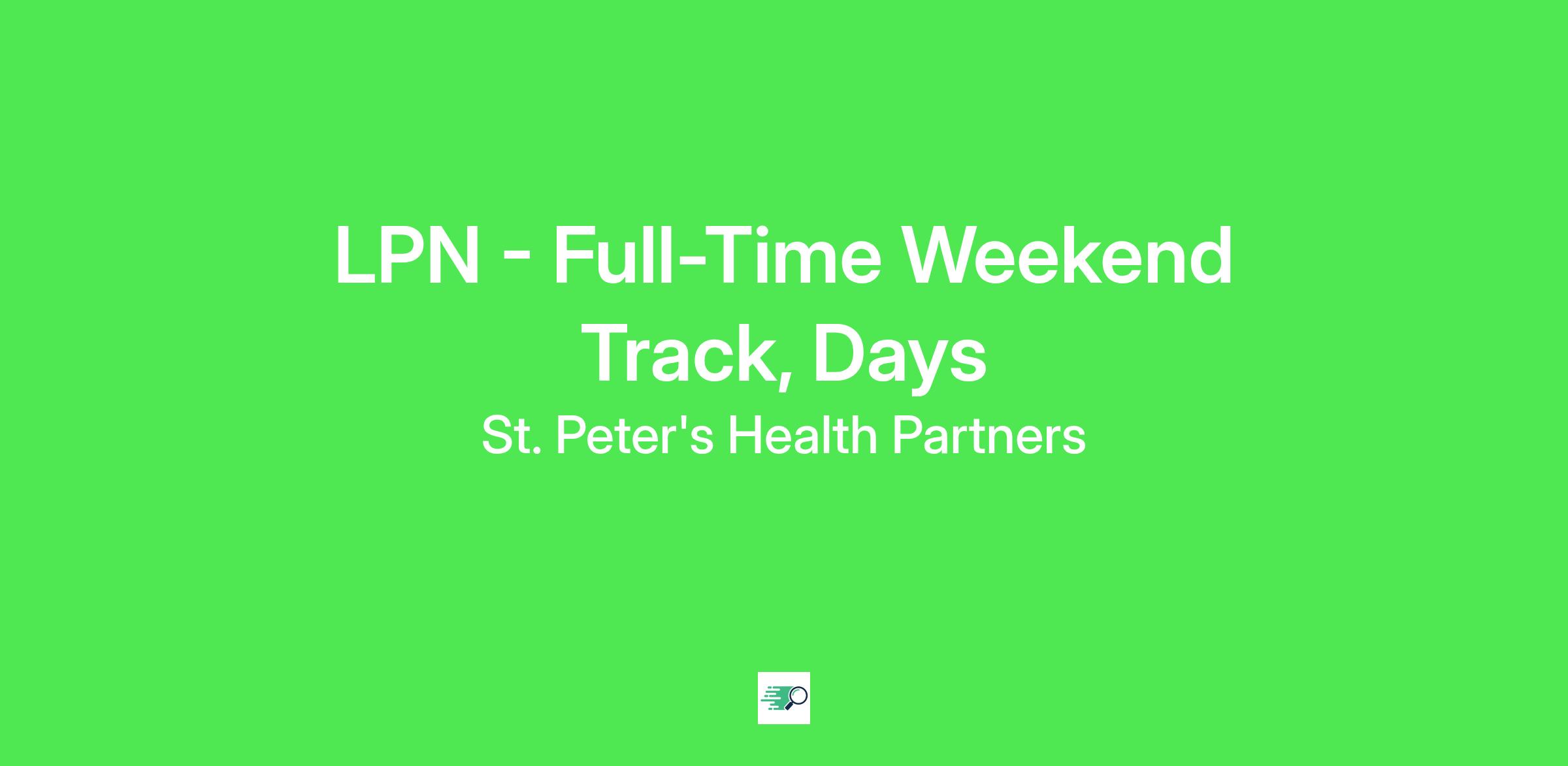*Employment Type:* Part time *Shift:* 12 Hour Day Shift *Description:* LPN (Skilled Nursing) – Heritage House – Troy, NY If you are looking for a LPN position in skilled nursing, this could be your opportunity! Here at St. Peter's Health Partner's, we care for more people in more places. With this schedule, the LPN will enjoy weekdays off while committing to work every weekend 7AM-7PM. *This means, you'll receive full time benefits for working just 24-hours per week! * Eddy Heritage House Nursing and Rehabilitation Center is a *122-bed skilled nursing care center* located in Troy, NY. Situated on top of upper Tibbits Avenue, the center overlooks the great Hudson Valley. Dedicated to enhancing the dignity, comfort and quality of life for seniors in a homelike environment. Eddy Heritage House provides Skilled Nursing Care, Rehabilitation Services, short-term, sub-acute rehabilitation services for individuals who do not require the intensive rehabilitation therapy provided at an acute rehabilitation hospital and respite services. Position Highlights: * Quality of Life: Where career opportunities and quality of life converge * Advancement: Strong orientation program, tuition assistance and career development * Engaged leaders: Supervisors, Managers and Directors that are out on the floor alongside the staff What you will do: * Administers nursing care to residents under the direction of a Registered Professional Nurse. Assists with treatments and procedures and carries out selected duties within the framework of the established nursing plan of care. Responsibilities: * In collaboration with the RN collects data about residents and determines priorities is resident care based upon identified needs and goals. * Contributes to the plan of care through collaboration and effective communication with the RN and other members of the healthcare team. * Under the direction of the RN and within the scope of practice, complies with established nursing policies, procedures and standards to provide safe, quality care to residents. * Administers medications and monitors IV therapy as ordered and according to established policies and standards. What you will need: Required: * A current license to practice as a Licensed Practical Nurse (LPN) in the State of New York Preferred: * 1 year of experience or more as a LPN, but willing to help train the right candidate to further their skills * 1 year of experience or more working in a skilled nursing facility * Ability to maintain the highest level of customer service while completing day to day duties and responsibilities * Ability to communicate effectively in a fast pace work environment * Ability to engage within a team setting Pay Range:$24.00 - $30.10 Pay is based on experience, skills, and education. Exempt positions under the Fair Labor Standards Act (FLSA) will be paid within the base salary equivalent of the stated hourly rates. The pay range may also vary within the stated range based on location. *Our Commitment * Rooted in our Mission and Core Values, we honor the dignity of every person and recognize the unique perspectives, experiences, and talents each colleague brings. By finding common ground and embracing our differences, we grow stronger together and deliver more compassionate, person-centered care. We are an Equal Opportunity Employer. All qualified applicants will receive consideration for employment without regard to race, color, religion, sex, sexual orientation, gender identity, national origin, disability, veteran status, or any other status protected by federal, state, or local law.