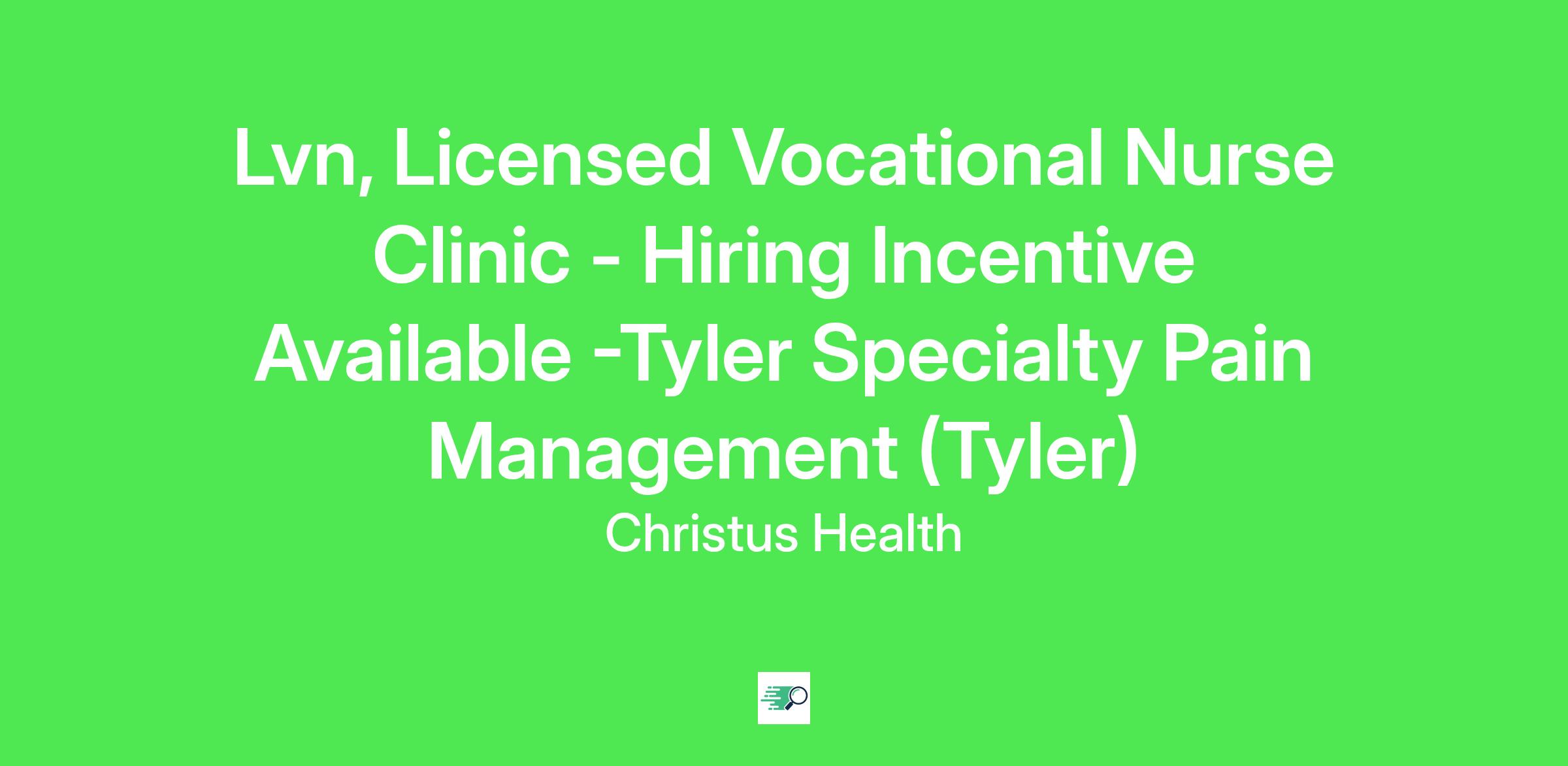 Lvn, Licensed Vocational Nurse Clinic - Hiring Incentive Available -Tyler Specialty Pain Management (Tyler)