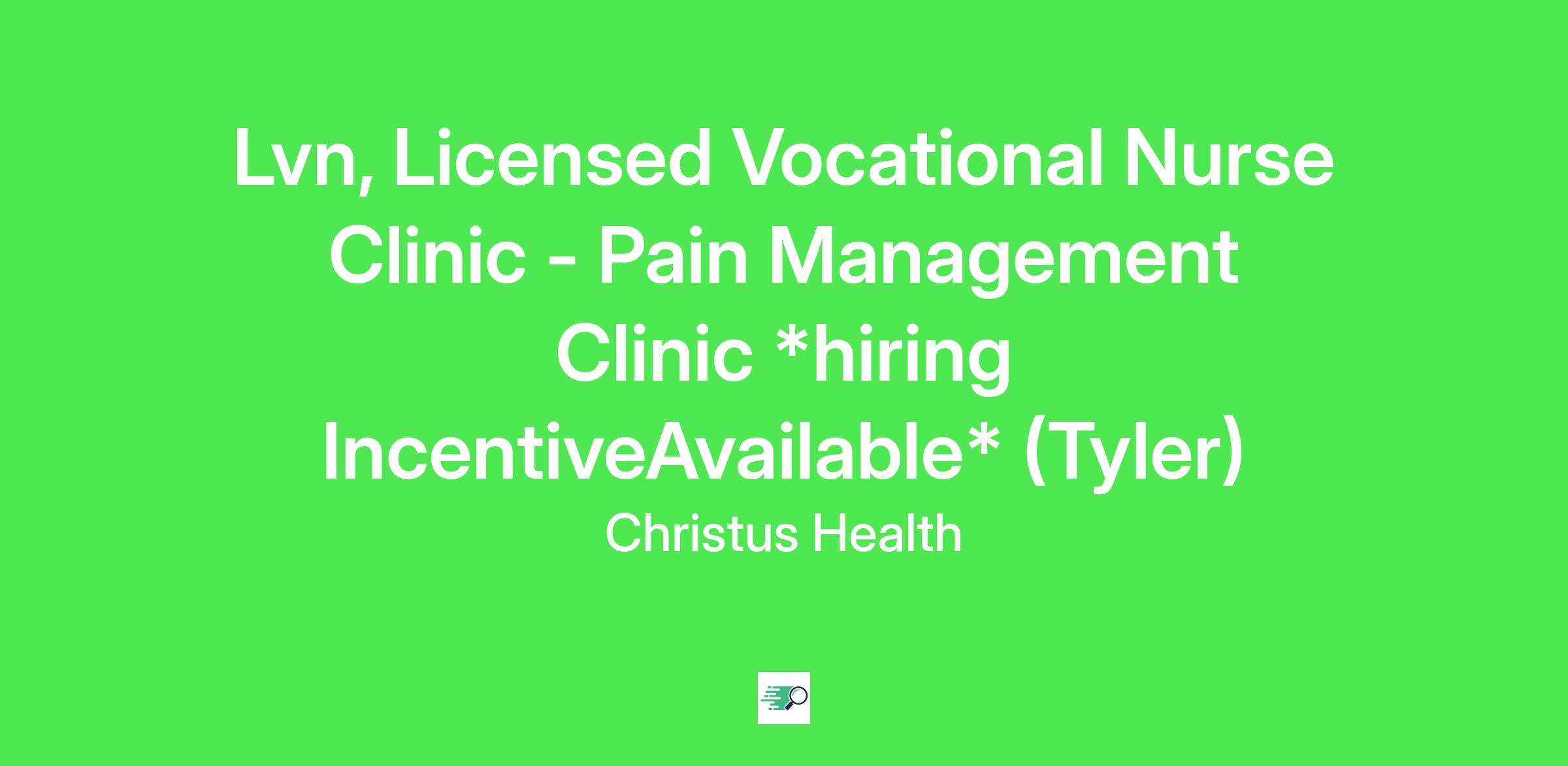 Lvn, Licensed Vocational Nurse Clinic - Pain Management Clinic *hiring IncentiveAvailable* (Tyler)