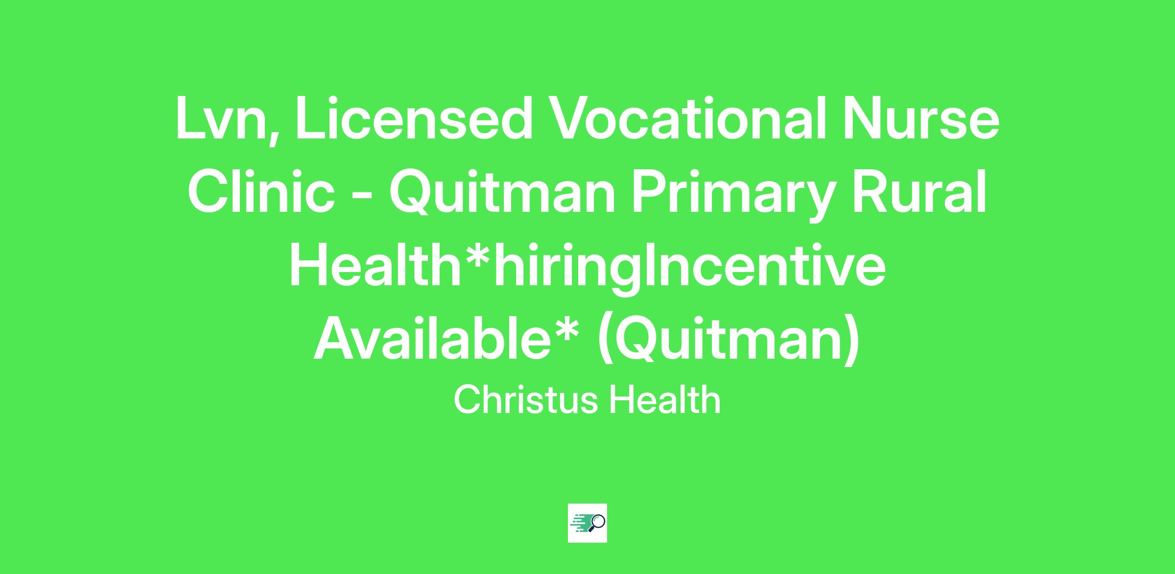 Lvn, Licensed Vocational Nurse Clinic - Quitman Primary Rural Health*hiringIncentive Available* (Quitman)