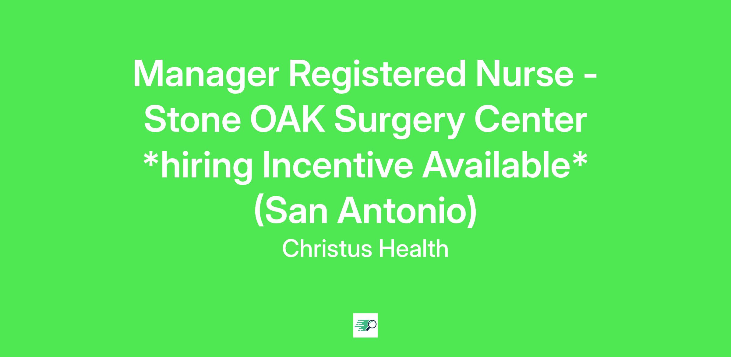 Manager Registered Nurse - Stone OAK Surgery Center *hiring Incentive Available*(San Antonio)