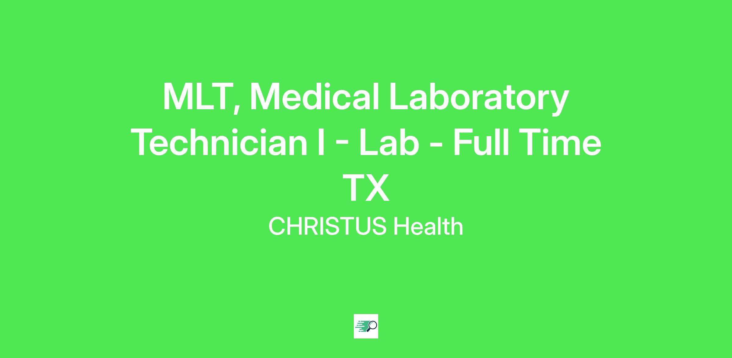 MLT, Medical Laboratory Technician I - Lab - Full Time TX