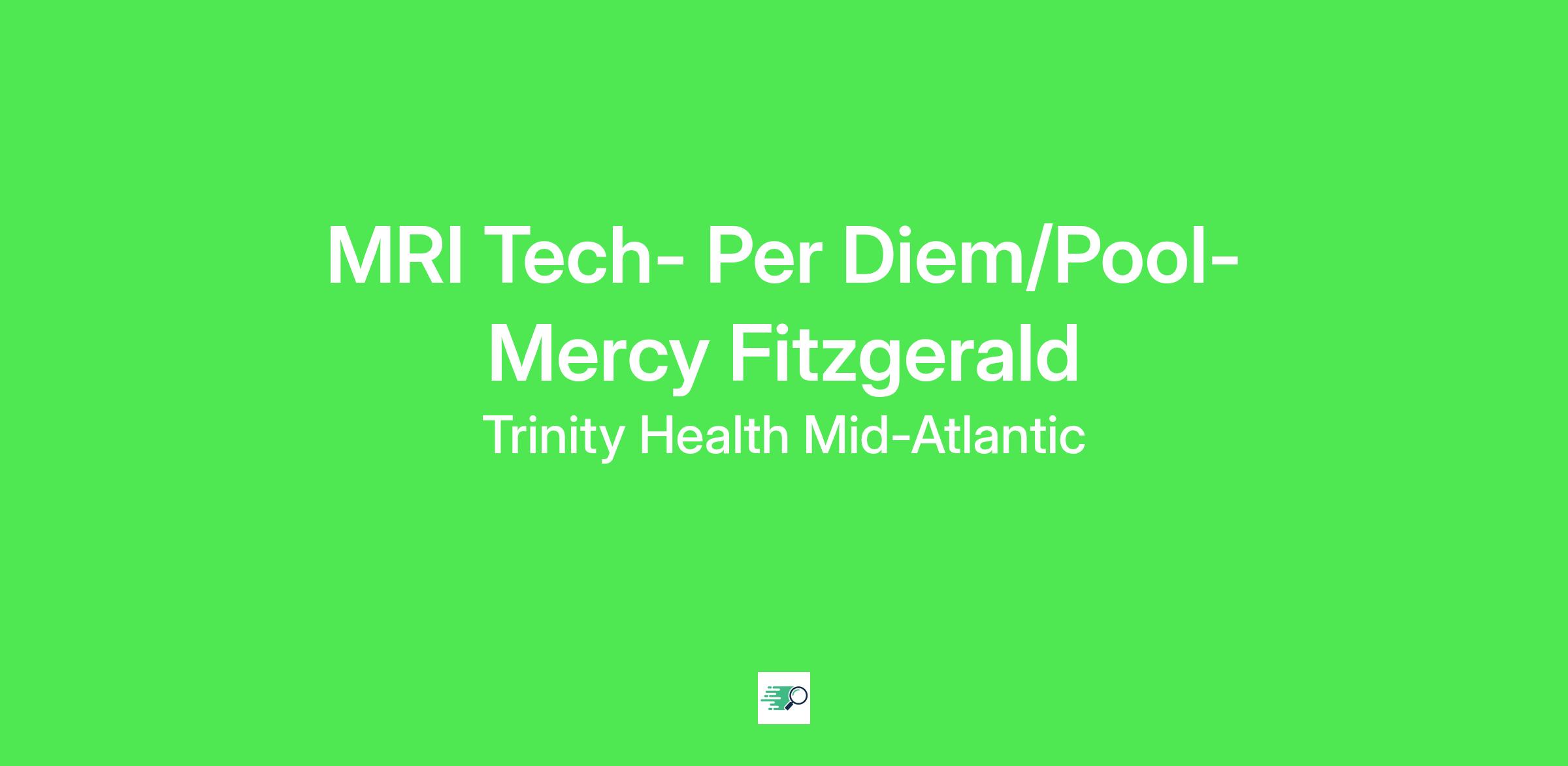 *Employment Type:* Part time *Shift:* Rotating Shift *Description:* Mercy Fitzgerald Hospital, a member of Trinity Health, Mid-Atlantic, is looking for MRI Technologists to join our MRI and Radiology Team! *Shift*: Pool/Per Diem, as needed including, evening, nights, weekend and holiday shifts; must be able to take call. *:* This role performs MRI examinations on patients utilizing specialized x-ray and computer systems. The purpose is delivery of quality care commensurate with the age of the patient population for the said designated area. * Knows, understands, incorporates, and demonstrates the Trinity Health Mission, Vision, and Values in behaviors, practices, and decisions. * Participates constructively in PI activities in the department * Recognizes special needs/concerns of populations served and adjusts communication accordingly, i.e., language barrier, diminished hearing, concrete terms, etc. * Performs MRI examinations on patients, using equipment correctly and according to manufacturer specifications. * Uses MRI scanners appropriately, has a good knowledge of cross sectional anatomy in all scan planes. * Understands and can accurately use PACS and Teleradiology systems. * Knows, understands and can demonstrate proper IV skills. Successfully performs venipuncture procedures; selects appropriate needle gauge considering patient age, skin condition, positioning, cognition. Monitors site according to policy: vessicants, non-vessicants, documentation. * Facilitates patient safety and comfort during procedures; explains procedures to patient and answers all questions prior to exam. * Reviews patient identification and patient history prior to exam. Screens all patients for metal objects prior to exam. * Performs clerical/administrative responsibilities; reviews physicians notes and insurance information. *Requirements:* * High School graduate; * Successful graduate from an AMA approved Radiology program * Registered by ARRT or acquired within one year * MRI certification required within 1 year of hire into position * BLS required *We offer a competitive salary and comprehensive benefits including:* * Retirement Savings Program * Free Parking * And more! *Our Commitment * Rooted in our Mission and Core Values, we honor the dignity of every person and recognize the unique perspectives, experiences, and talents each colleague brings. By finding common ground and embracing our differences, we grow stronger together and deliver more compassionate, person-centered care. We are an Equal Opportunity Employer. All qualified applicants will receive consideration for employment without regard to race, color, religion, sex, sexual orientation, gender identity, national origin, disability, veteran status, or any other status protected by federal, state, or local law.