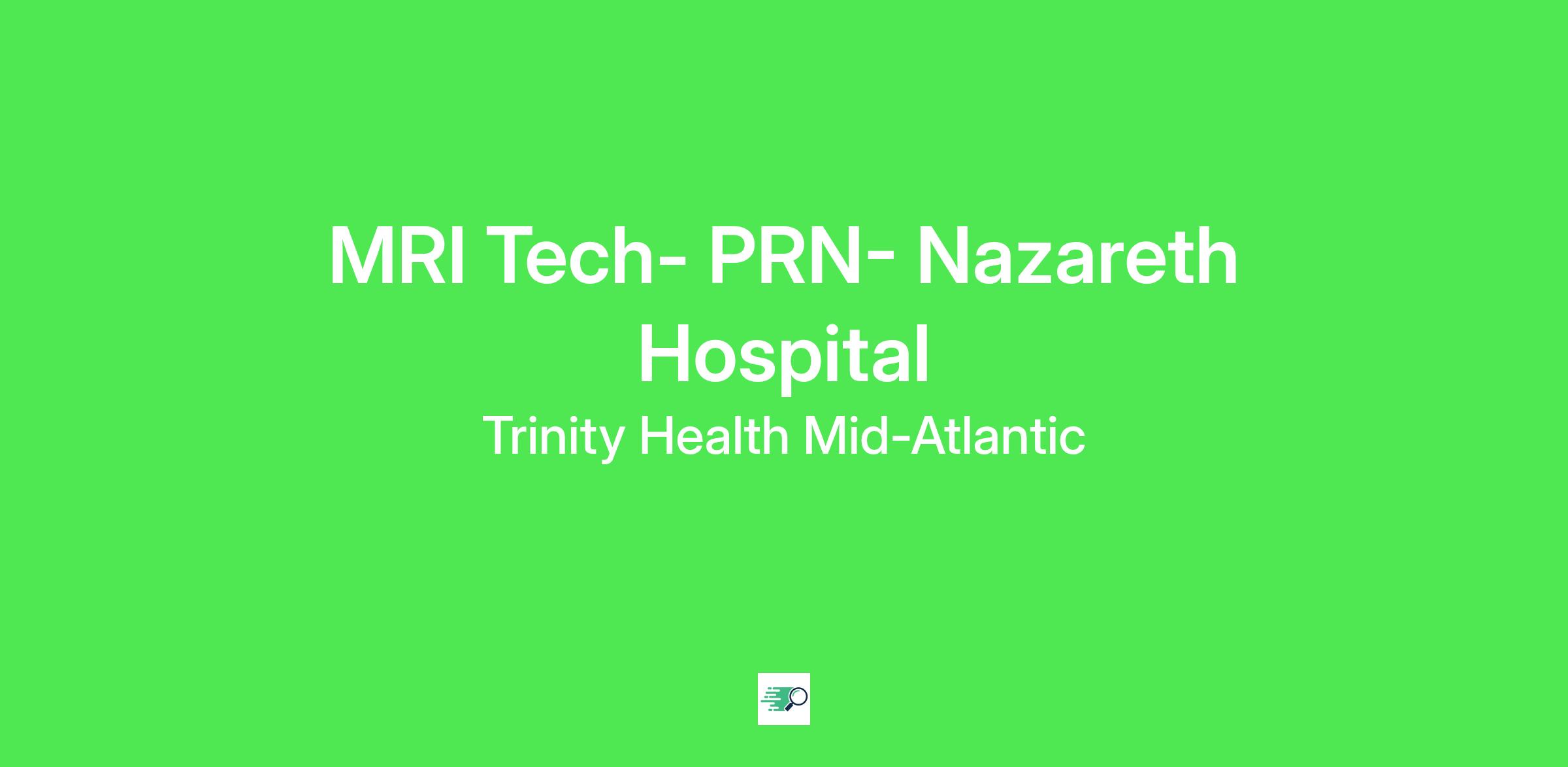 *Employment Type:* Part time *Shift:* Rotating Shift *Description:* Nazareth, a member of Trinity Health Mid-Atlantic, is looking for a MRI Technologist to join our Radiology Team! *Shift: *. PRN, per department needs. Weekend and holiday requirements. * Summary* Performs MRI examinations on patients utilizing specialized x-ray and computer systems. The purpose is delivery of quality care commensurate with the age of the patient population for the said designated area. *Requirements: * * HS/equivalent graduate * Successful graduate from an AMA approved Radiology program * Registered by ARRT * MRI certification required within 1yr * BLS required * MRI experience preferred *We offer a competitive salary and comprehensive benefits including:* * Retirement Savings Program * Free Parking * And more! *Our Commitment * Rooted in our Mission and Core Values, we honor the dignity of every person and recognize the unique perspectives, experiences, and talents each colleague brings. By finding common ground and embracing our differences, we grow stronger together and deliver more compassionate, person-centered care. We are an Equal Opportunity Employer. All qualified applicants will receive consideration for employment without regard to race, color, religion, sex, sexual orientation, gender identity, national origin, disability, veteran status, or any other status protected by federal, state, or local law.