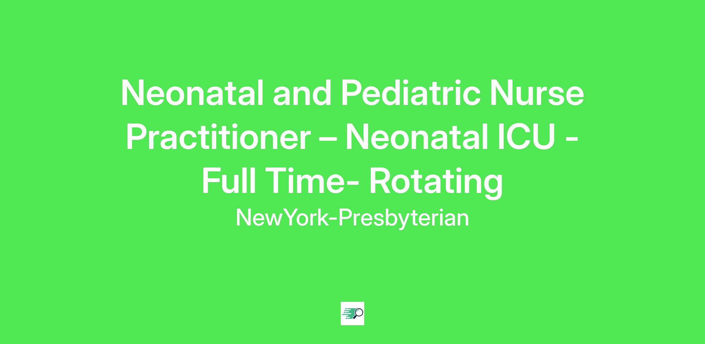 Neonatal and Pediatric Nurse Practitioner – Neonatal ICU -Full Time-  Rotating