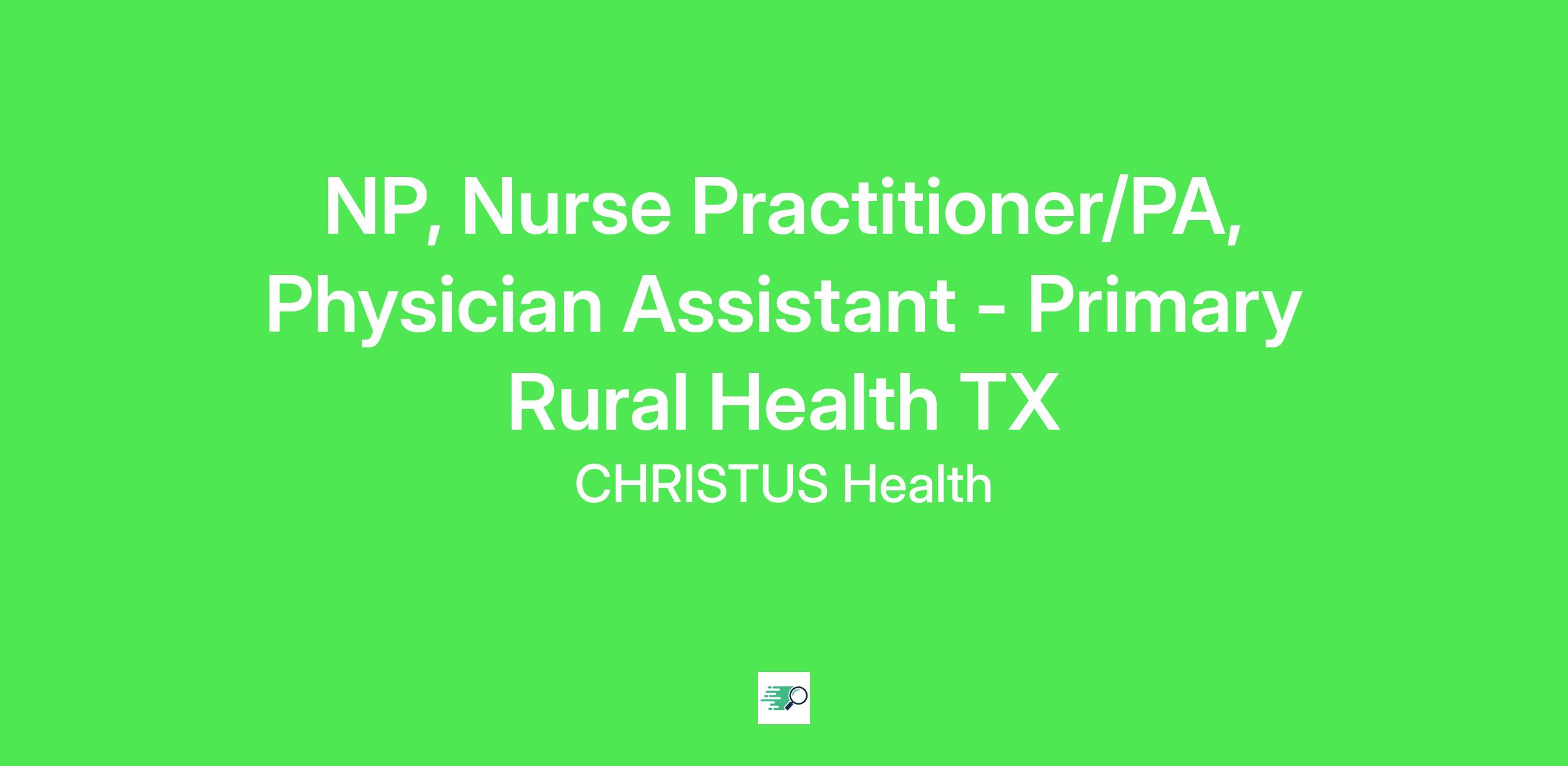 NP, Nurse Practitioner/PA, Physician Assistant - Primary Rural Health TX