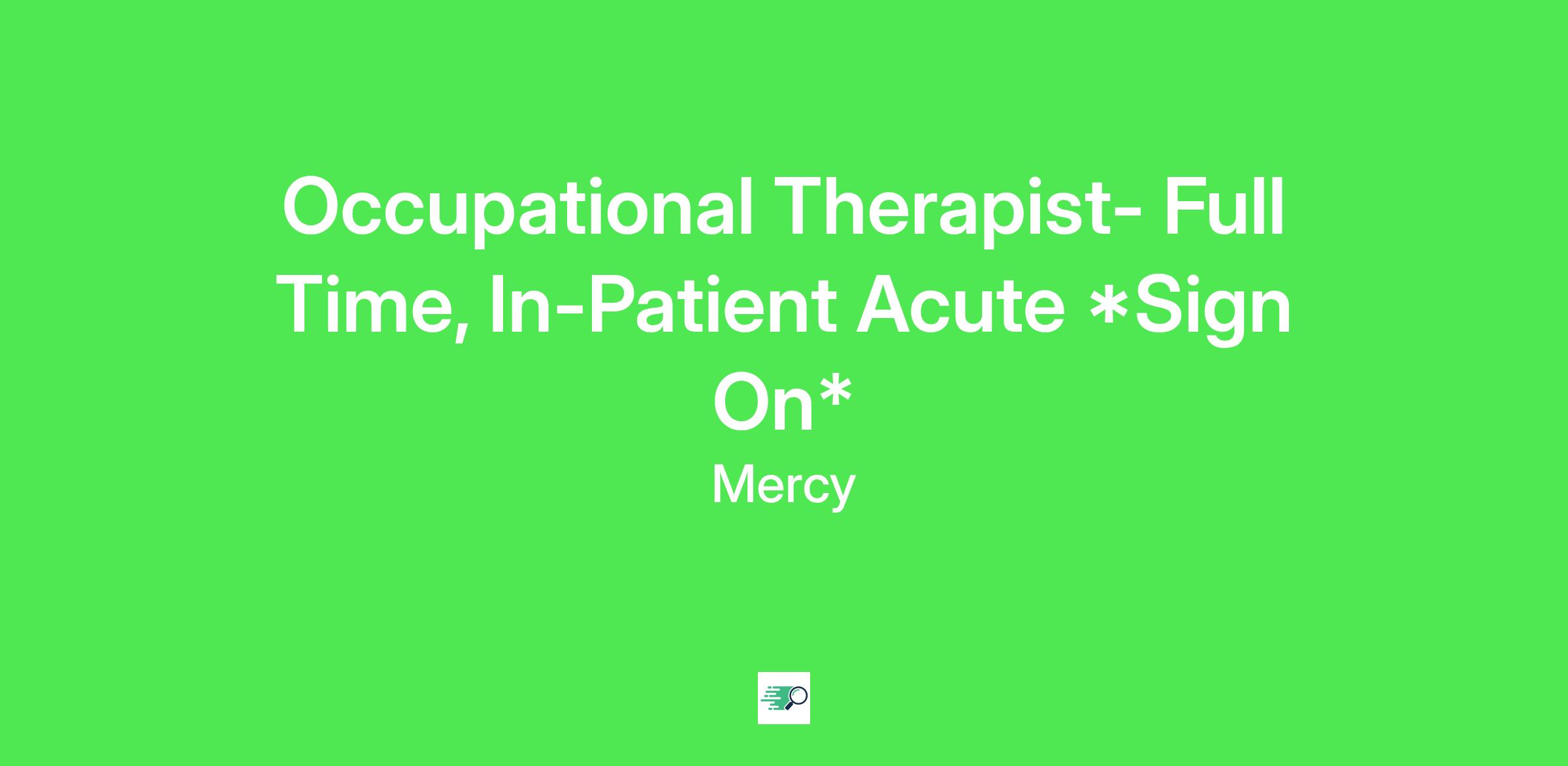 Occupational Therapist Mercy Oklahoma City Inpatient Full Time/ 36 hours per week This position qualifies for a $10,000 sign on bonus We’re a Little Different Our mission is clear. We bring to life a healing ministry through our compassionate care and exceptional service. At Mercy, we believe in careers that match the unique gifts of unique individuals – careers that not only make the most of your skills and talents, but also your heart. Join us and discover why Modern Healthcare Magazine named us in its “Top 100 Places to Work.” Overview: Provides patient care by organizing and conducting medically prescribed programs in order to achieve maximum potential. Displays treatment skills practicing within the scope of State Practice Act and in compliance with all rules and regulations with National Board and governing bodies in the state of practice. Promotes growth and development of department by assisting in special projects and/or coordinating activities in patient care programs. Qualifications: Education : Graduate of an accredited Occupational Therapy program Licensure: Current Occupational Therapy license or eligibility within the hiring state, may work under a temporary license up to 90 days. Certifications: Current BLS through the American Heart Association Other: Must be able to respond to emergency situations Preferred Certifications: National Board Certification in Occupational Therapy We Offer Great Benefits: Day-one comprehensive health, vision and dental coverage, PTO, tuition reimbursement and employer-matched retirement funds are just a few of the great benefits offered to eligible co-workers, including those working 32 hours or more per pay period! We’re bringing to life a healing ministry through compassionate care. At Mercy, our supportive community will be behind you every step of your day, especially the tough ones. You will have opportunities to pioneer new models of care and transform the health care experience through advanced technology and innovative procedures. We’re expanding to help our communities grow. Join us and be a part of it all. What Makes You a Good Match for Mercy? Compassion and professionalism go hand-in-hand with us. Having a positive outlook and a strong sense of advocacy is in perfect step with our mission and vision. We’re also collaborative and unafraid to do a little extra to deliver excellent care – that’s just part of our commitment. If that sounds like a good fit for you, we encourage you to apply.