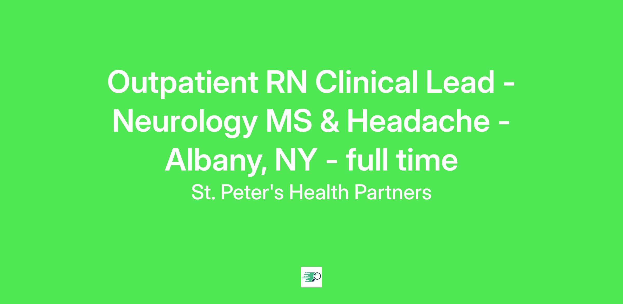 Employment Type:* Full time *Shift:* Day Shift *Description:* *Nurse Senior - Medical Practice Lead* *- MS & Headache - Albany, NY - FT* If you are looking for a Senior Nurse / RN Clinical Lead position in Albany, this could be your opportunity. Peter's Health Partner's, we care for more people in more places. Position Highlights:* * *Quality of Life:* Where career opportunities and quality of life converge * *Advancement: *Strong orientation program, generous tuition allowance and career development * *Work/Life: *Monday - Friday, Office Hours *What you will do* The *RN Clinical Lead* acts as a Technical / Clinical Lead in the Office managing the Clinical work processes. Utilizing the nursing process, diagnosis and treats human responses to actual or potential problems, taking into account individual patient special physical and age-related needs and resources. * Is accountable to the patient, family and peers for the totality of work performed in order that the organization can fulfill its mission of providing quality primary health care within the community. * What you will need:* * Three to five years nursing experience, preferably in a primary care setting and as determined by individual primary care service and specialty needs. * Demonstrates the appropriate skills and ability to assess, treat and care for patients based on age of patient served by Primary Care Center. * Current NYS license and registration * Current CPR Certification * BSN highly preferred * HS Diploma required * Ability to lift 20 lbs. *Exempt positions under the Fair Labor Standards Act (FLSA) will be paid within the base salary equivalent of the stated hourly rates. By finding common ground and embracing our differences, we grow stronger together and deliver more compassionate, person-centered care. All qualified applicants will receive consideration for employment without regard to race, color, religion, sex, sexual orientation, gender identity, national origin, disability, veteran status, or any other status protected by federal, state, or local law.