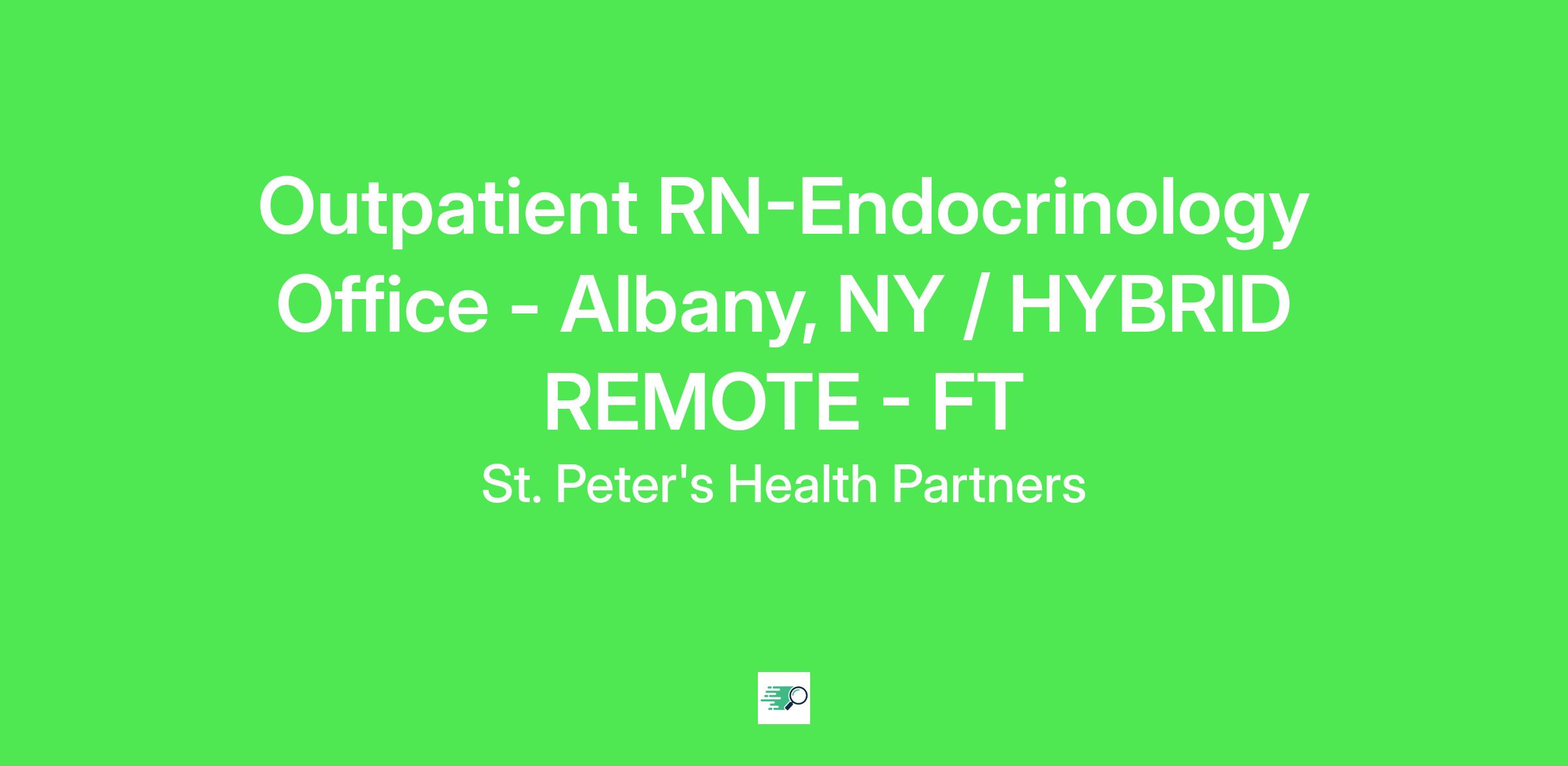 *Employment Type:* Full time *Shift:* Day Shift *Description:* *RN - Endocrinology Office โ Albany, NY / Hybrid Remote โ FT* If you are looking for an RN II position in an outpatient Endocrinology Office, this could be your opportunity. Here at St. Peter's Health Partner's, we care for more people in more places. This position will be located at 63 Shaker Road, Albany, NY and is available hybrid remote. *Position Highlights:* * *Quality of Life:* Where career opportunities and quality of life converge * *Advancement: *Strong orientation program, generous tuition allowance and career development * *Work/Life: *Monday โ Friday Office Hours *What you will do:* RN hybrid position specialized role to do chart review for endocrine referrals. The *Registered Professional Nurse* has the responsibility and accountability to utilize the nursing process to diagnose and treat human responses to actual or potential problems of individuals or groups. The Registered Professional Nurse works within and contributes to an environment where the St. Peter's Healthcare Services mission is actualized, patient outcomes are achieved, and professional practice is realized. *Responsibilities:* * Brings patient to exam room, takes appropriate vital signs and documents in electronic medical record. * Review and update medication list to ensure accurate and complete list in electronic medical record (EMR) available for provider review and submission. * Complete referrals and tracks patients' compliance. * Review prescriptions electronically and send prescriptions to providers for review and submission. * Obtains patient consent for procedures as directed by provider. * Performs pre-visit planning and reviews quality metrics. * Retrieves telephonic clinical information from patients who call into the office. * Monitors task list and completes tasks assigned by provider in a timely manner based on urgency. * Educates patients regarding medication, testing procedures and home care techniques. * Ensure proper labeling, handling and documentation for patient specimens. * Follow up with patient regarding test results based on advice given by provider. * Maintains a clean and safe work environment including disinfecting patient care areas and equipment. * In conjunction with other nursing colleagues, maintains the medical supply cabinet and drug cabinet. * Uses the electronic medical record to communicate effectively. * Performs quality assurance duties as assigned. * Provides a clinical visit summary (Patient Plan) to patient as requested including educational materials. * Participates in daily Patient Care huddles as appropriate. * Works cooperatively with all colleagues to ensure quality patient care at all times. * Performs other duties as assigned. *What you will need:* * Associates or Bachelorโs degree in Nursing preferred * HS Diploma/equivalent required * Current unencumbered NYS RN license * Basic Life Support certification * 6 months previous RN experience * Must be able to lift 20 lbs. *Pay Range:* $30.00- $43.50 Pay is based on experience, skills, and education. Exempt positions under the Fair Labor Standards Act (FLSA) will be paid within the base salary equivalent of the stated hourly rates. The pay range may also vary within the stated range based on location. *Our Commitment * Rooted in our Mission and Core Values, we honor the dignity of every person and recognize the unique perspectives, experiences, and talents each colleague brings. By finding common ground and embracing our differences, we grow stronger together and deliver more compassionate, person-centered care. We are an Equal Opportunity Employer. All qualified applicants will receive consideration for employment without regard to race, color, religion, sex, sexual orientation, gender identity, national origin, disability, veteran status, or any other status protected by federal, state, or local law.
