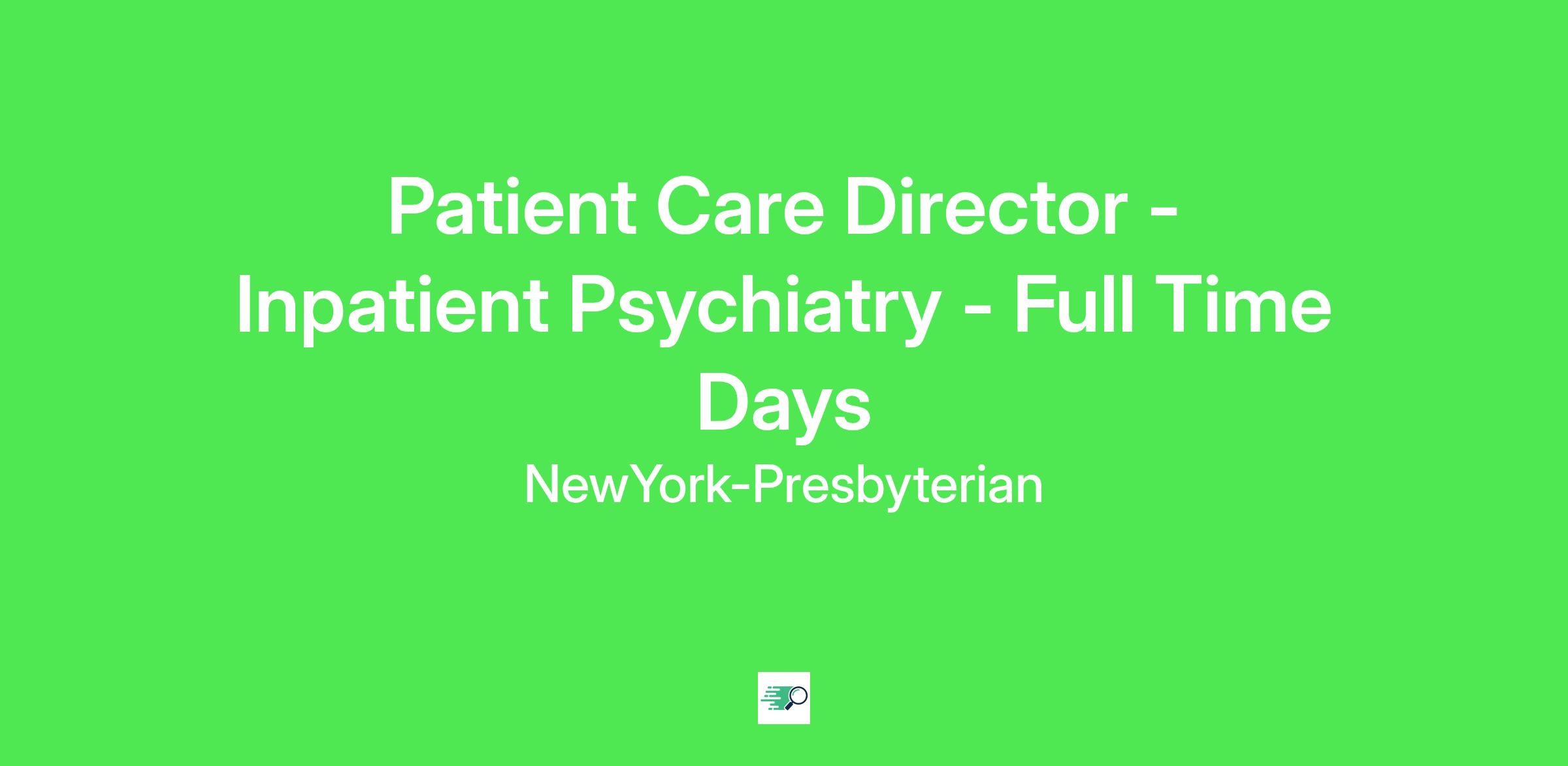 Patient Care Director - Inpatient Psychiatry - Full Time Days