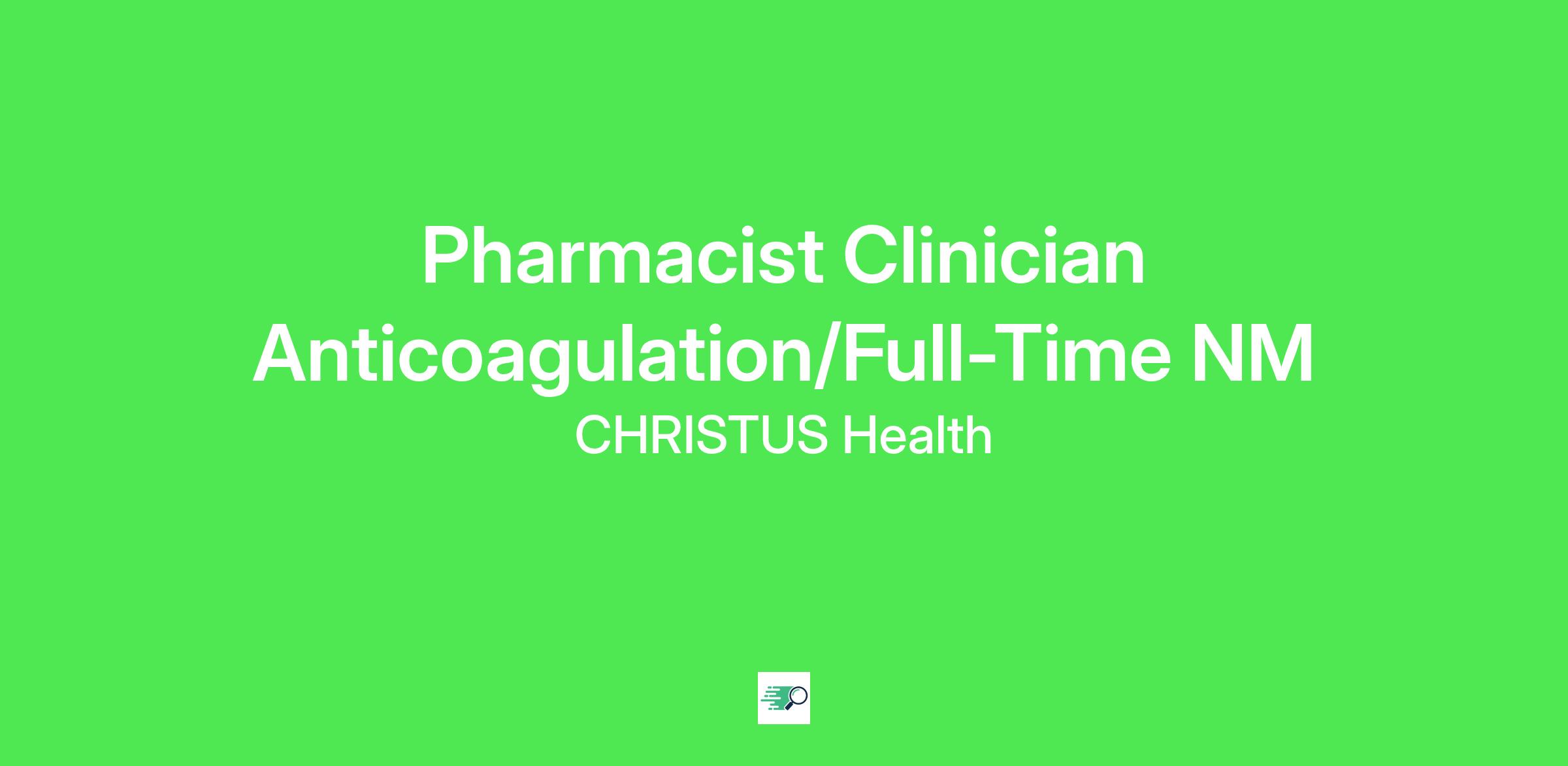 Requirements MINIMUM QUALIFICATIONS: EDUCATION: Graduate of an ACPE accredited School of Pharmacy. Bachelors of Science in Pharmacy or Doctor of Pharmacy required. CERTIFICATION/LICENSES: Licensed Registered Pharmacist (RPh) in the State of New Mexico. Licensed Pharmacist Clinician (PhC) by the New Mexico Board of Pharmacy Registered as a Pharmacist Clinician with the Board of Medicine to exercise prescriptive authority in accordance with current/active guidelines or protocols as defined by the Pharmacist Prescriptive Authority Act, Section 61-11B-1 through 61-11B-3 NMSA and 16.19.4.17 NMAC-Rn Certification in Basic Life Support for Healthcare Providers (BLS) Advanced training/certification in anticoagulation and/or disease management SKILLS: Gathering and analyzing physiological, psycho-social and socio-economic data; accurately evaluating patient condition in person or via phone; recognizing changes in patient status and ordering appropriate diagnostic tests and therapies; educating, listening and communicating with patients and families, physicians and other staff. Ability to read, write, and speak English fluently required; fluency in Spanish preferred. Strong verbal, written and interpersonal communication skills. Ability to work collaboratively with others. Clinical pharmacy skills including physical assessment, planning, delivering and evaluation of care required. Ability to work at a rapid pace under stressful conditions. EXPERIENCE: Direct patient care experience as Pharmacist Clinician with prescriptive authority. Experience current in disease management NATURE OF SUPERVISION: -Responsible to: Anticoagulation Management Services Coordinator and Pharmacy Director ENVIRONMENT: May be exposed to physical injury, toxic substances, infectious diseases and bloodborne pathogens. Requires knowledge of safety standards to limit exposure to infectious diseases. - Bloodborne pathogens: C PHYSICAL REQUIREMENTS: Bend, stoop, lift up to 20 lbs., reach above head level and below knee level. Move around clinic.