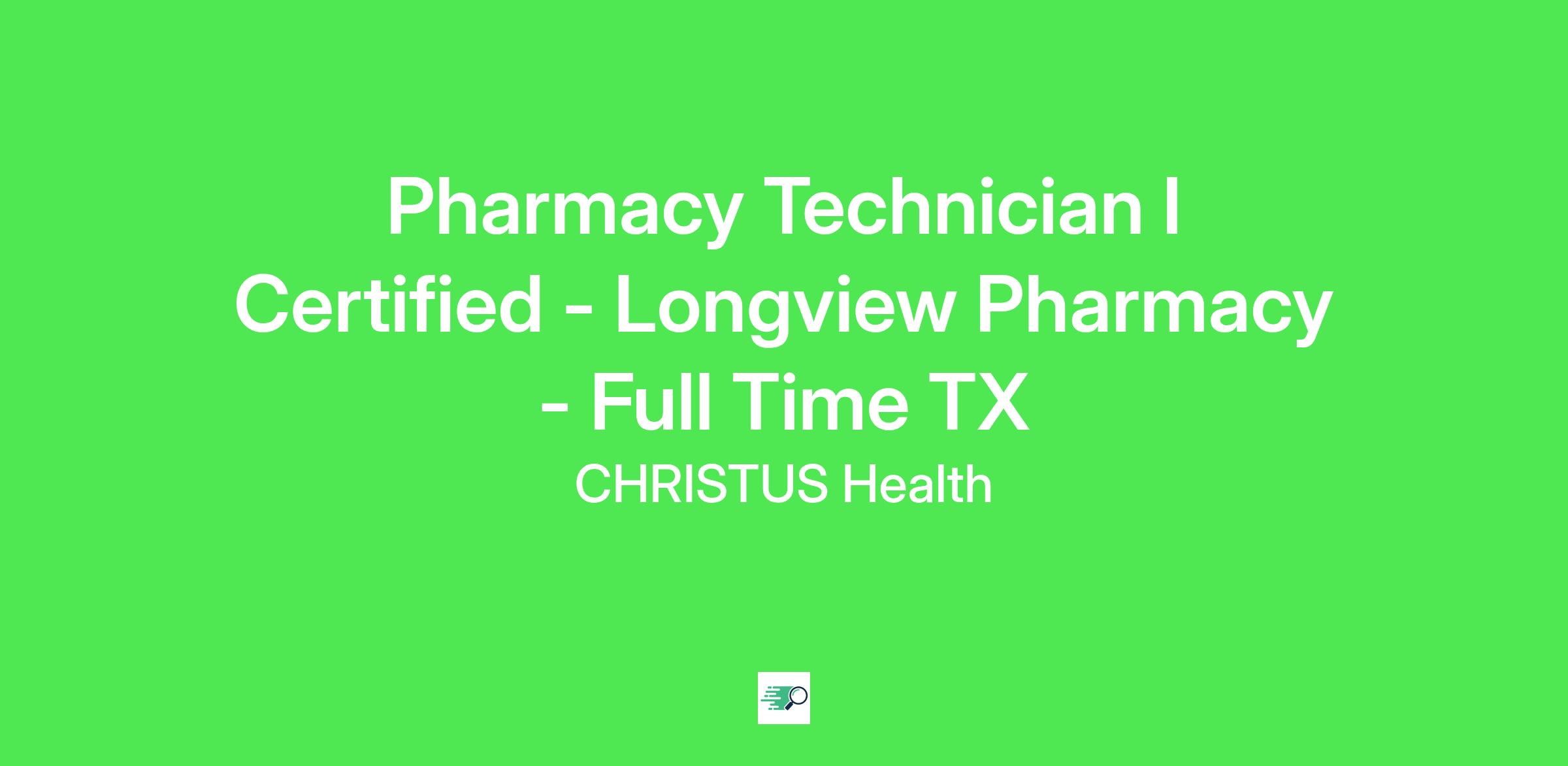 Pharmacy Technician I Certified - Longview Pharmacy - Full Time TX