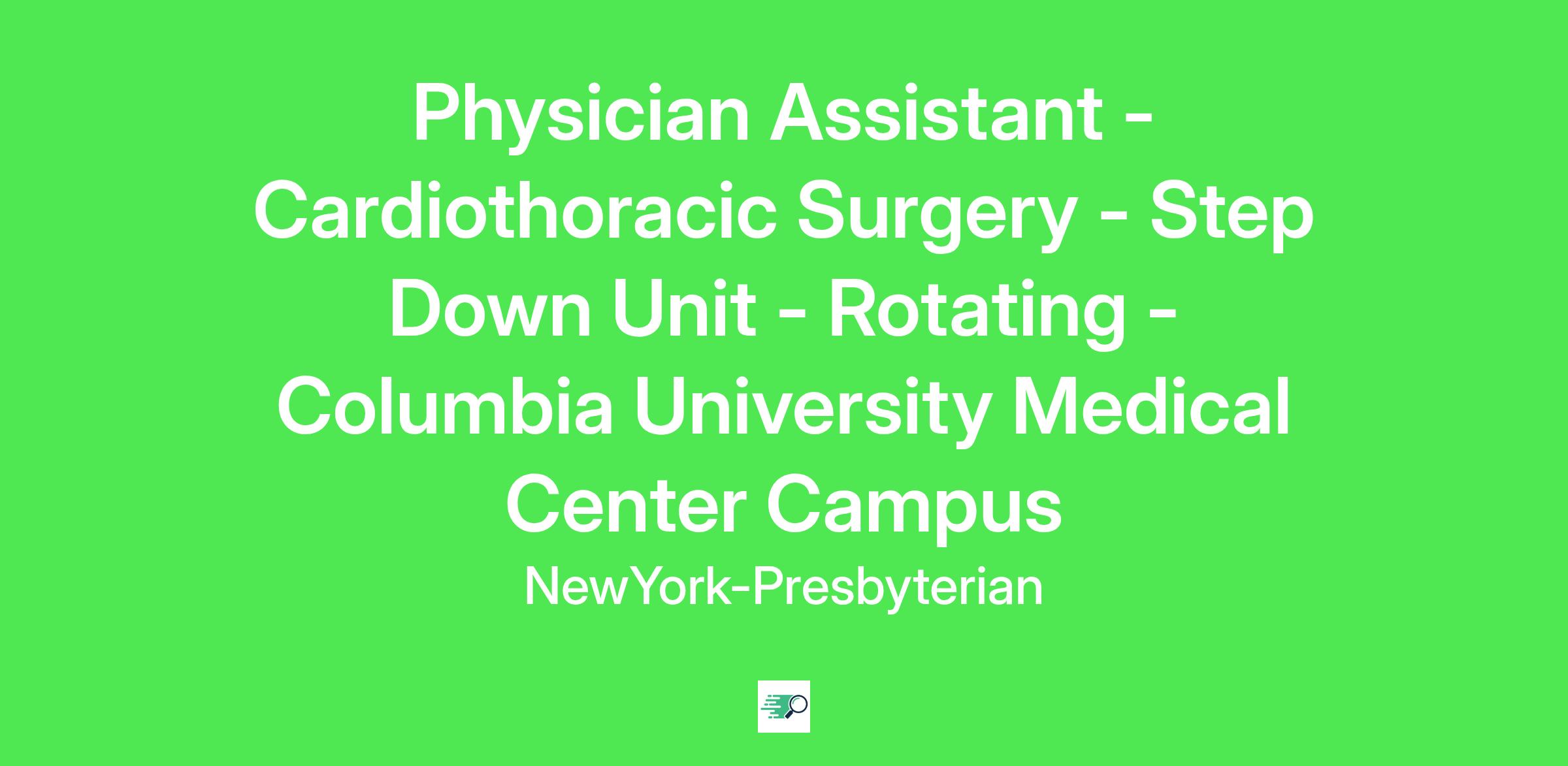 Physician Assistant - Cardiothoracic Surgery - Step Down Unit - Rotating - Columbia University Medical Center Campus