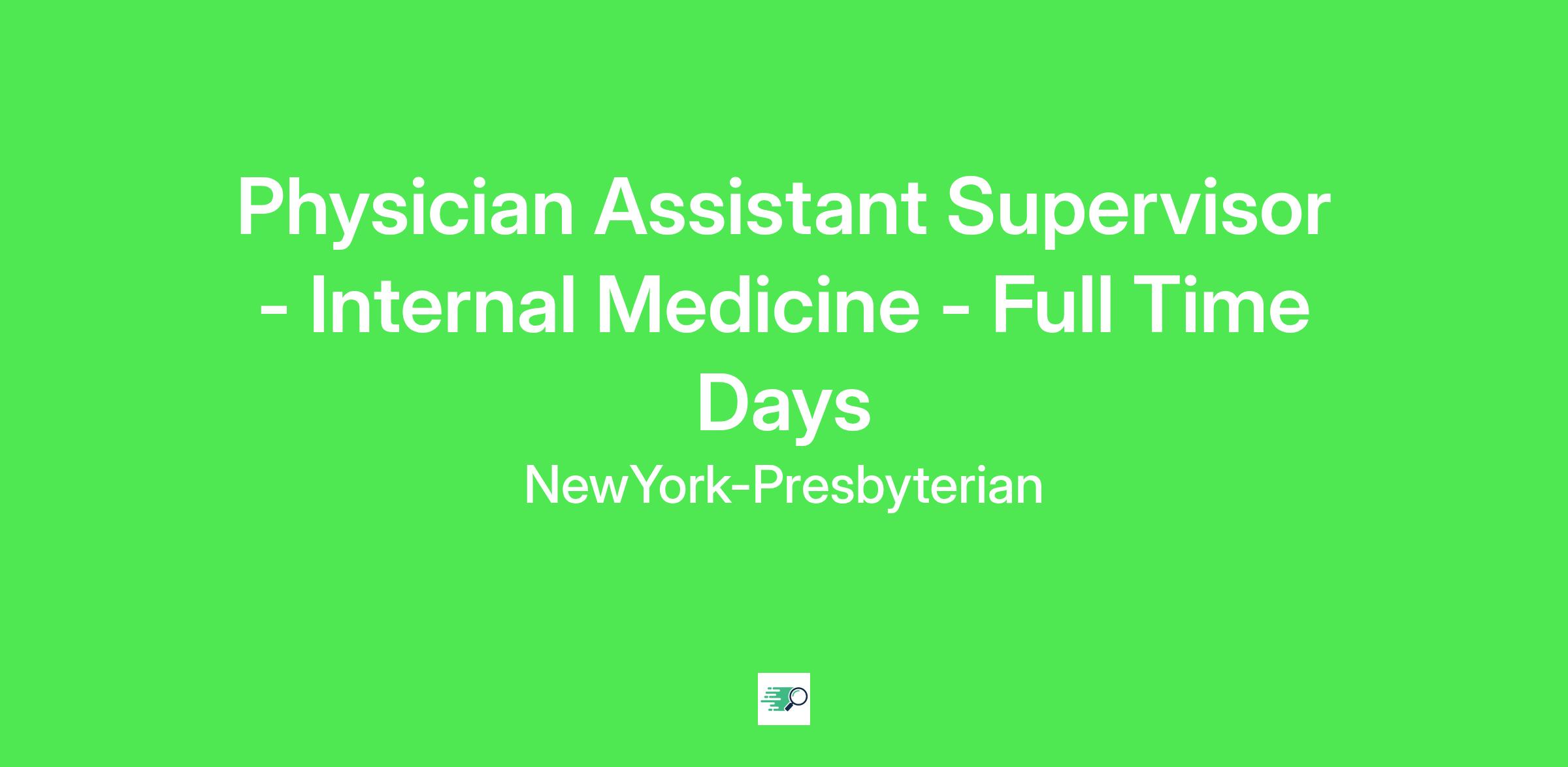 Physician Assistant Supervisor - Internal Medicine - Full Time Days