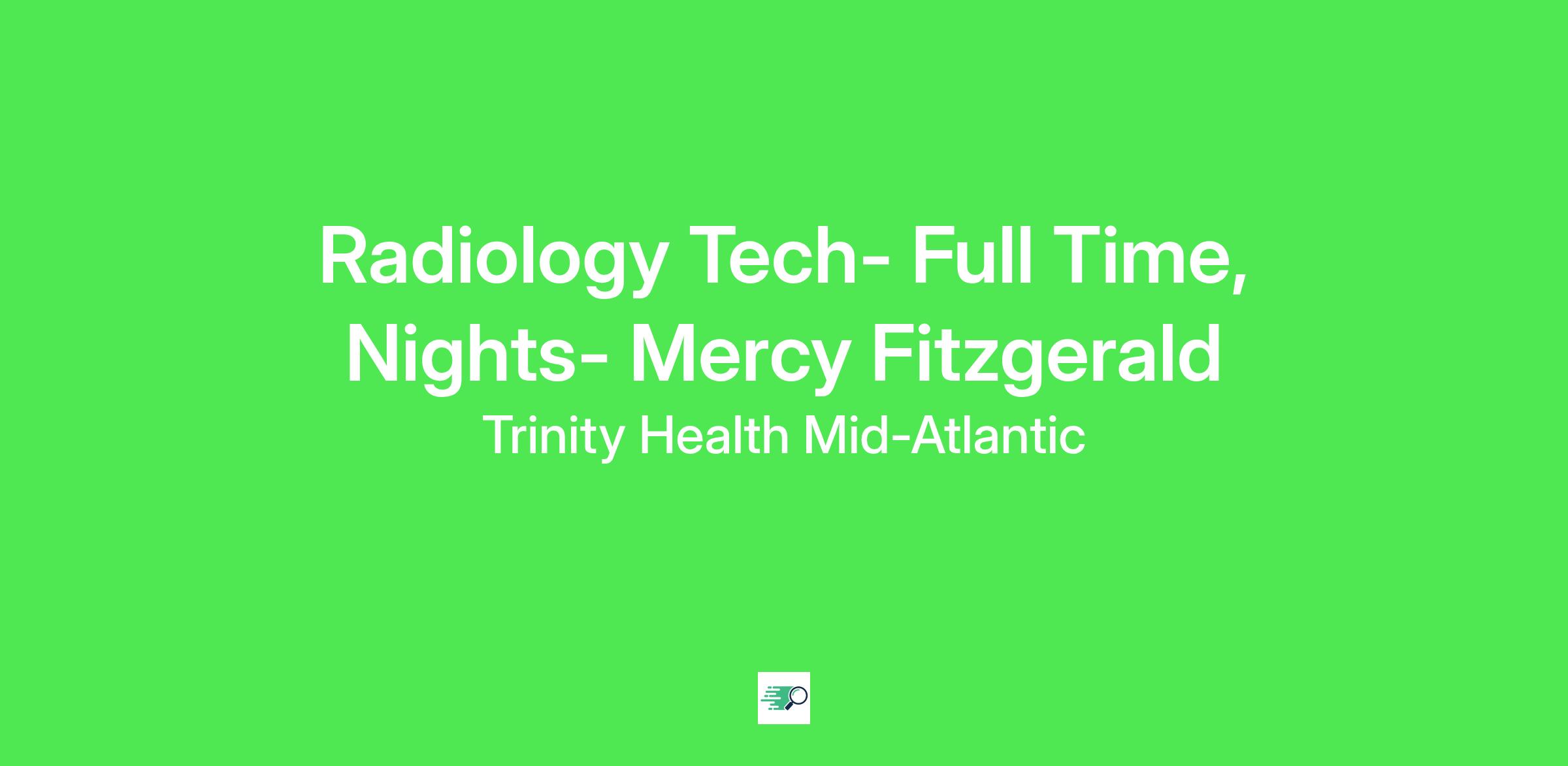 *Employment Type:* Part time *Shift:* 12 Hour Night Shift *Description:* Mercy Fitzgerald, a member of Trinity Health Mid-Atlantic, is looking for a Radiology Technologist to join our Radiology Team! *Shift: * Full time, 36hrs/wk. Every Friday, Saturday and Sunday 7p to 7a. Holiday requirements, per department needs. *Job D*escription Summary:* Involves technical work in the operation of diagnostic radiographs and fluoroscopic equipment. The purpose is delivery of quality care commensurate with the age of the patient population for the designated area. *Requirements: * * HS/equivalent graduate * Successful graduate from an AMA approved Radiology program * Registered by ARRT or acquired within 3months * AHA BLS required ​*We offer a competitive salary and comprehensive benefits including:* * Medical, Dental, Vision * PTO Accrual * Tuition Reimbursement * Retirement Savings Program * Free Parking * And more! *Our Commitment * Rooted in our Mission and Core Values, we honor the dignity of every person and recognize the unique perspectives, experiences, and talents each colleague brings. By finding common ground and embracing our differences, we grow stronger together and deliver more compassionate, person-centered care. We are an Equal Opportunity Employer. All qualified applicants will receive consideration for employment without regard to race, color, religion, sex, sexual orientation, gender identity, national origin, disability, veteran status, or any other status protected by federal, state, or local law.