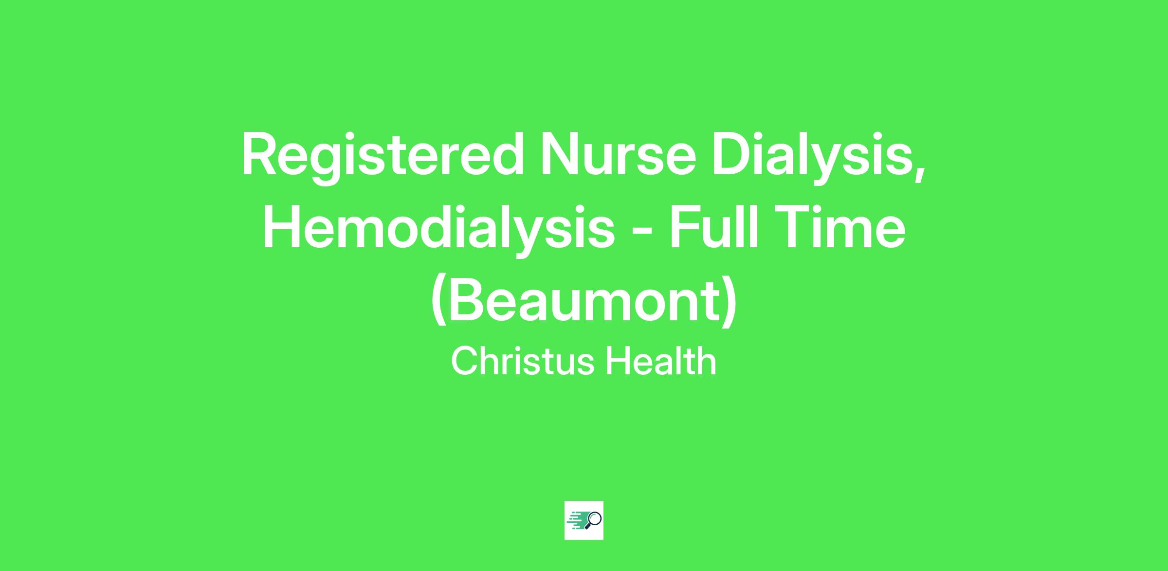Registered Nurse Dialysis, Hemodialysis - Full Time (Beaumont)
