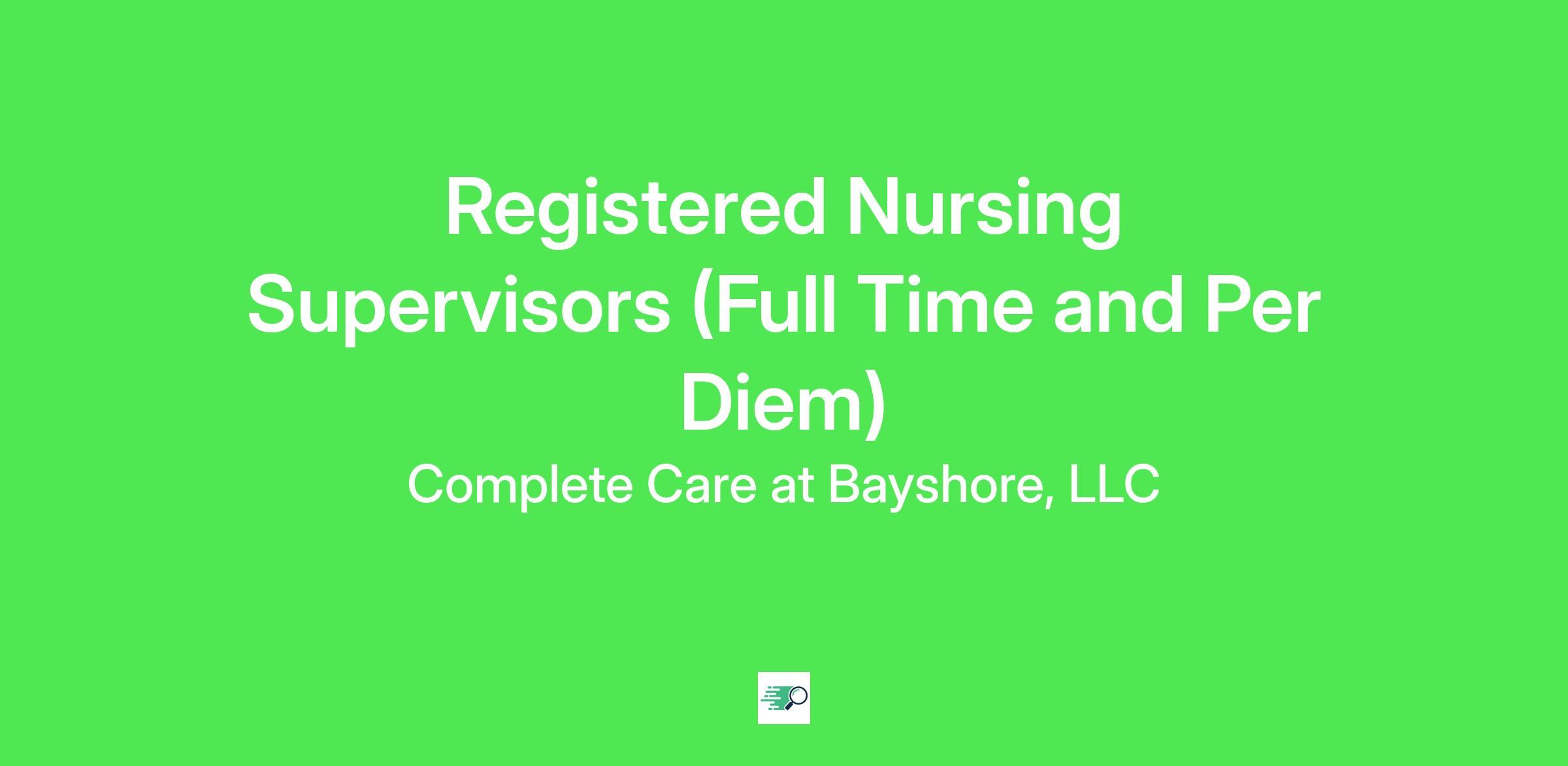 Complete Care at Bayshore, LLC - Part-time 3pm-11pm & 11-7 shift Registered Nurse Supervisor At Complete Care at Bayshore, we believe great care starts with a great team. Our residents aren’t just patients—they’re part of our extended family. That’s why we’re looking for an RN Supervisor who’s ready to lead with compassion and make a meaningful impact every day. As part of our nursing leadership team, you’ll help guide and support caregivers, ensuring quality care and a safe, respectful environment for all. And just as we care deeply for our residents, we prioritize the well-being and career growth of every team member. RNJobs LeadershipNursing What You’ll Do: Supervise nursing staff and ensure quality care is delivered on your shift Monitor and support medication distribution, blood draws, and treatment plans Conduct rounds to assess resident needs and staff performance Educate residents, families, and team members as needed Ensure compliance with all local, state, and federal regulations Collaborate with leadership to support a culture of excellence Additional duties as assigned by the Assistant Director of Nursing, Director of Nursing, or Administrator Qualifications: Active New Jersey RN license (unencumbered) Associate or Bachelor’s Degree in Nursing Long-term care experience preferred but not required Supervisory or leadership experience is a plus LPNs with strong leadership potential may be considered Schedule & Perks: Full-time 3-11 with every other weekend; Part-time all three shifts You can choose to get paid every day - no more waiting for payday! Health, dental, vision insurance, and PTO (for full-time employees) Career advancement opportunities within the Complete Care network Join a workplace where you’re appreciated, empowered, and part of a team that truly cares. Apply today and make a real difference at Complete Care at Bayshore. Complete Care is proud to be an Equal Opportunity Employer.
