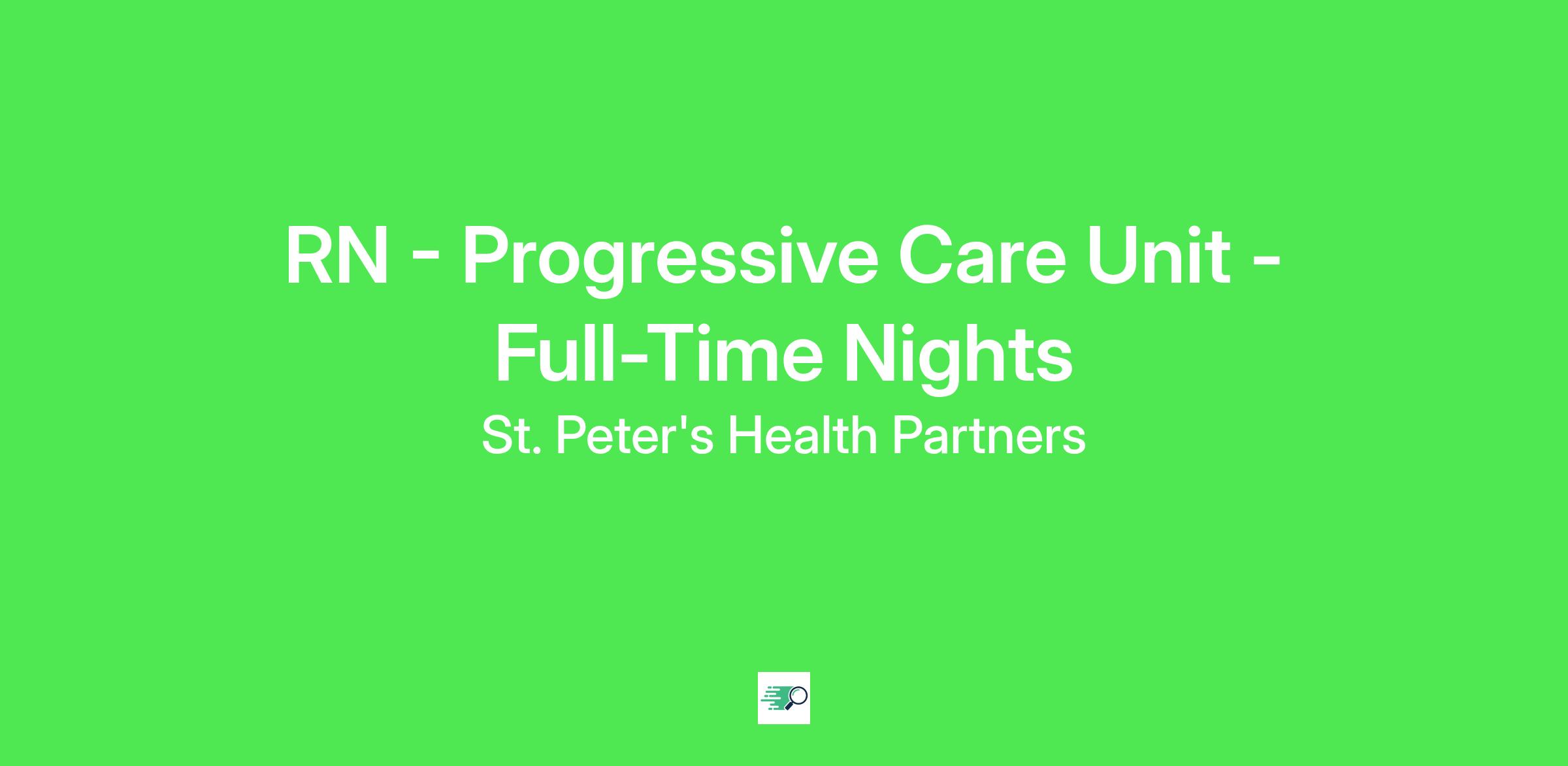 *Employment Type:* Full time *Shift:* 12 Hour Night Shift *Description:* If you are an RN looking for a Full Time Nights in Progressive Care at Samaritan Hospital in Troy, NY, this could be your opportunity. Here at St. Peter's Health Partners, we care for more people in more places. *Position Highlights:* * Quality of Life: Where career opportunities and quality of life converge * Advancement: Strong orientation program, generous tuition allowance and career development *Requirements:* * ASN, BSN preferred * BLS, ACLS/PALS preferred * RN licensed in NYS * 1 year of experience in ACUTE nursing, preferably in ED or Critical Care *Pay Range:* $35.00-$45.00hr Pay is based on experience, skills, and education. Exempt positions under the Fair Labor Standards Act (FLSA) will be paid within the base salary equivalent of the stated hourly rates. The pay range may also vary within the stated range based on location *Our Commitment * Rooted in our Mission and Core Values, we honor the dignity of every person and recognize the unique perspectives, experiences, and talents each colleague brings. By finding common ground and embracing our differences, we grow stronger together and deliver more compassionate, person-centered care. We are an Equal Opportunity Employer. All qualified applicants will receive consideration for employment without regard to race, color, religion, sex, sexual orientation, gender identity, national origin, disability, veteran status, or any other status protected by federal, state, or local law.