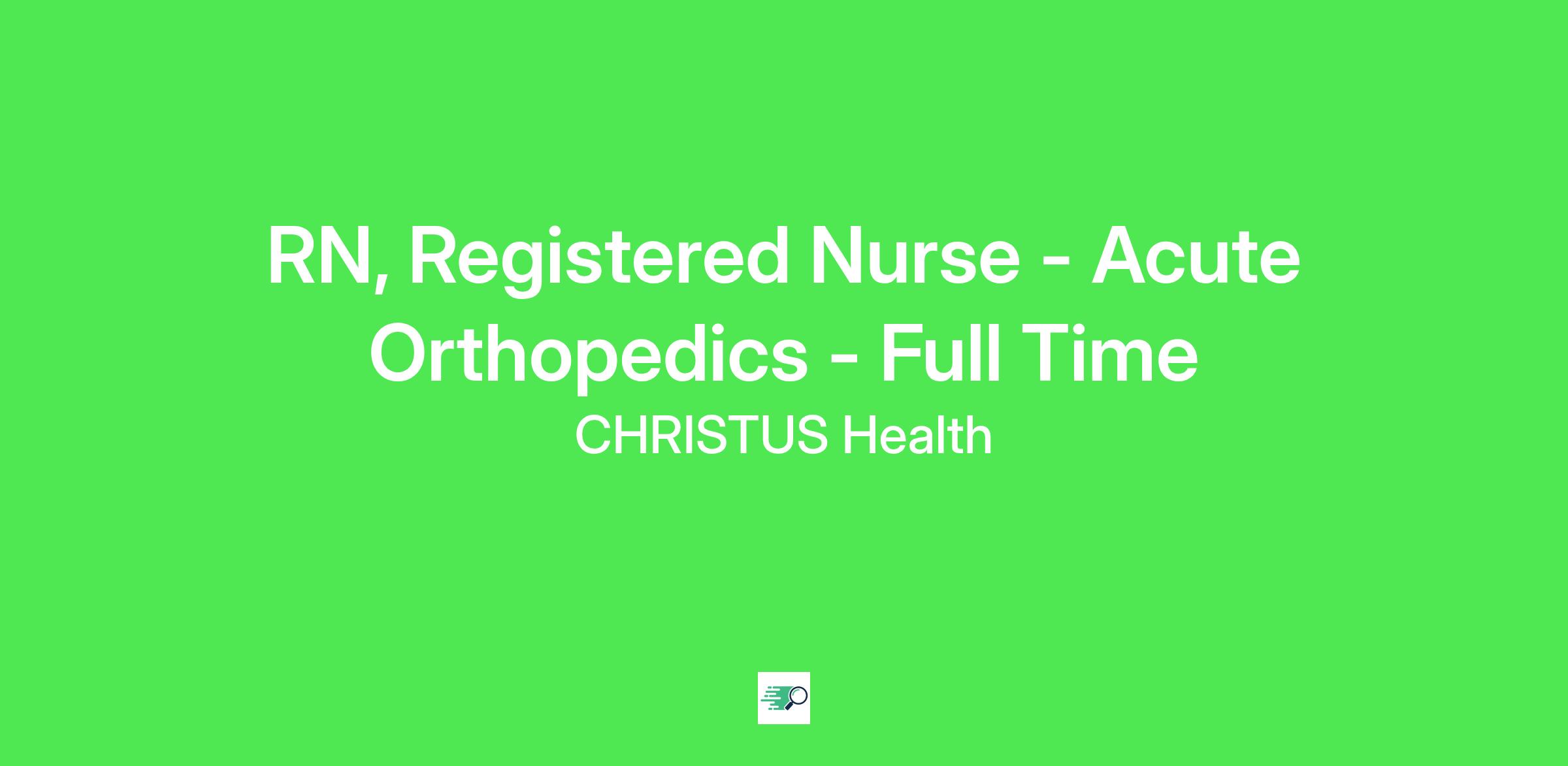 RN, Registered Nurse - Acute Orthopedics - Full Time