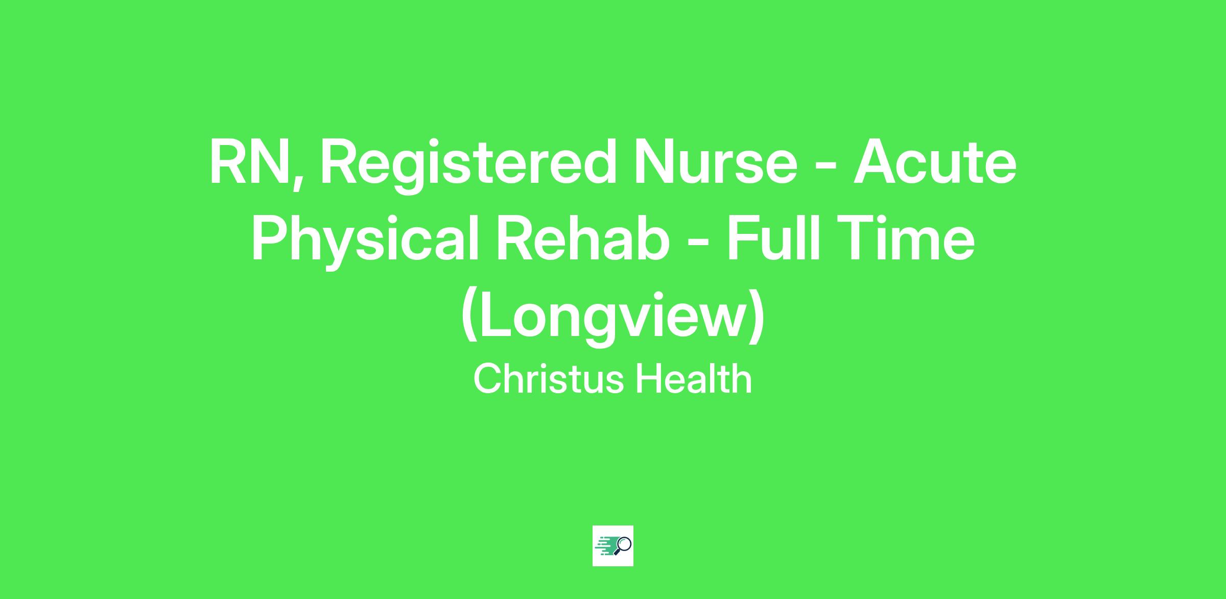 RN, Registered Nurse - Acute Physical Rehab - Full Time (Longview)